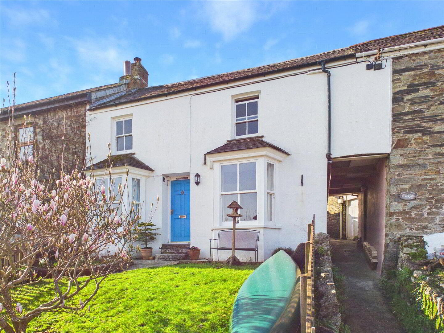 To the front, there is ample garden space with convenient side access leading to the rear. The front garden is a particular highlight, enjoying superb open views across the cricket pitch, local park and the River Camel, a perfect spot to relax on a summer’s day and take in the vibrant community atmosphere.
