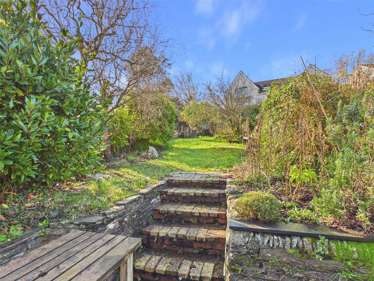 Externally, the property continues to impress. The rear garden is thoughtfully arranged over three levels. The first tier offers a patio area, ideal for outdoor seating and entertaining. Steps lead to a second patio terrace, which in turn provides access to a generous lawned area. At the far end of the garden, a garden shed offers valuable additional storage space.