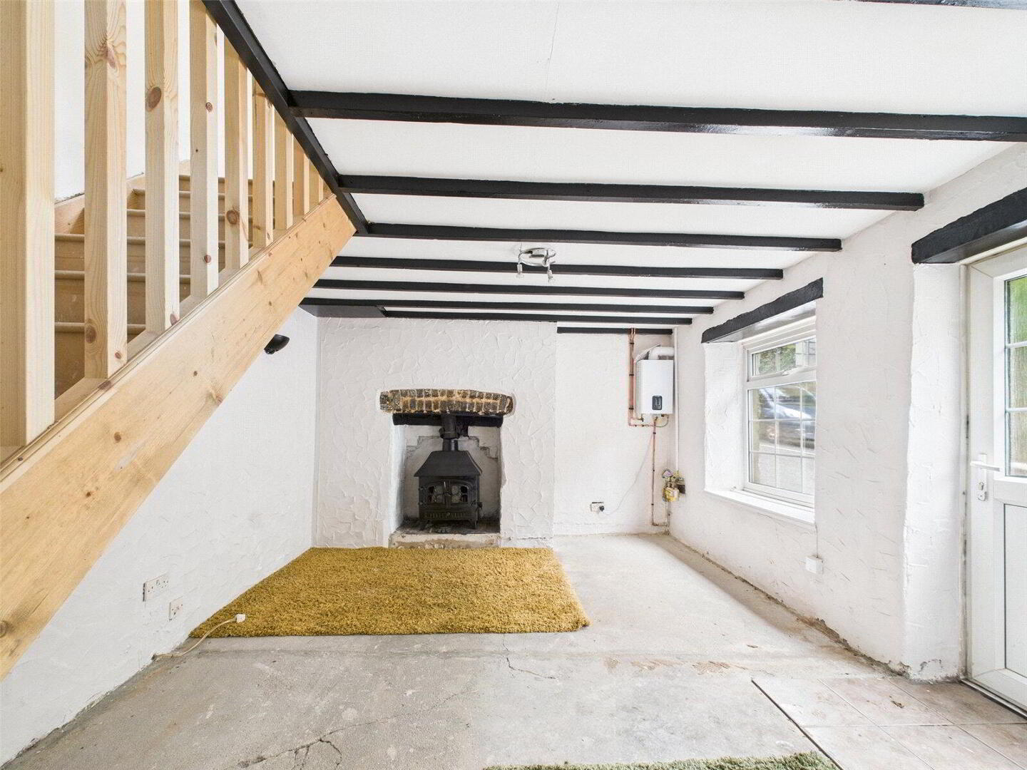 Inside, the open-plan living space is bright and inviting, with a newly fitted kitchen featuring sleek appliances—ideal for cooking and entertaining. The cozy log burner adds warmth and atmosphere, making the living area a great place to relax after a long day.