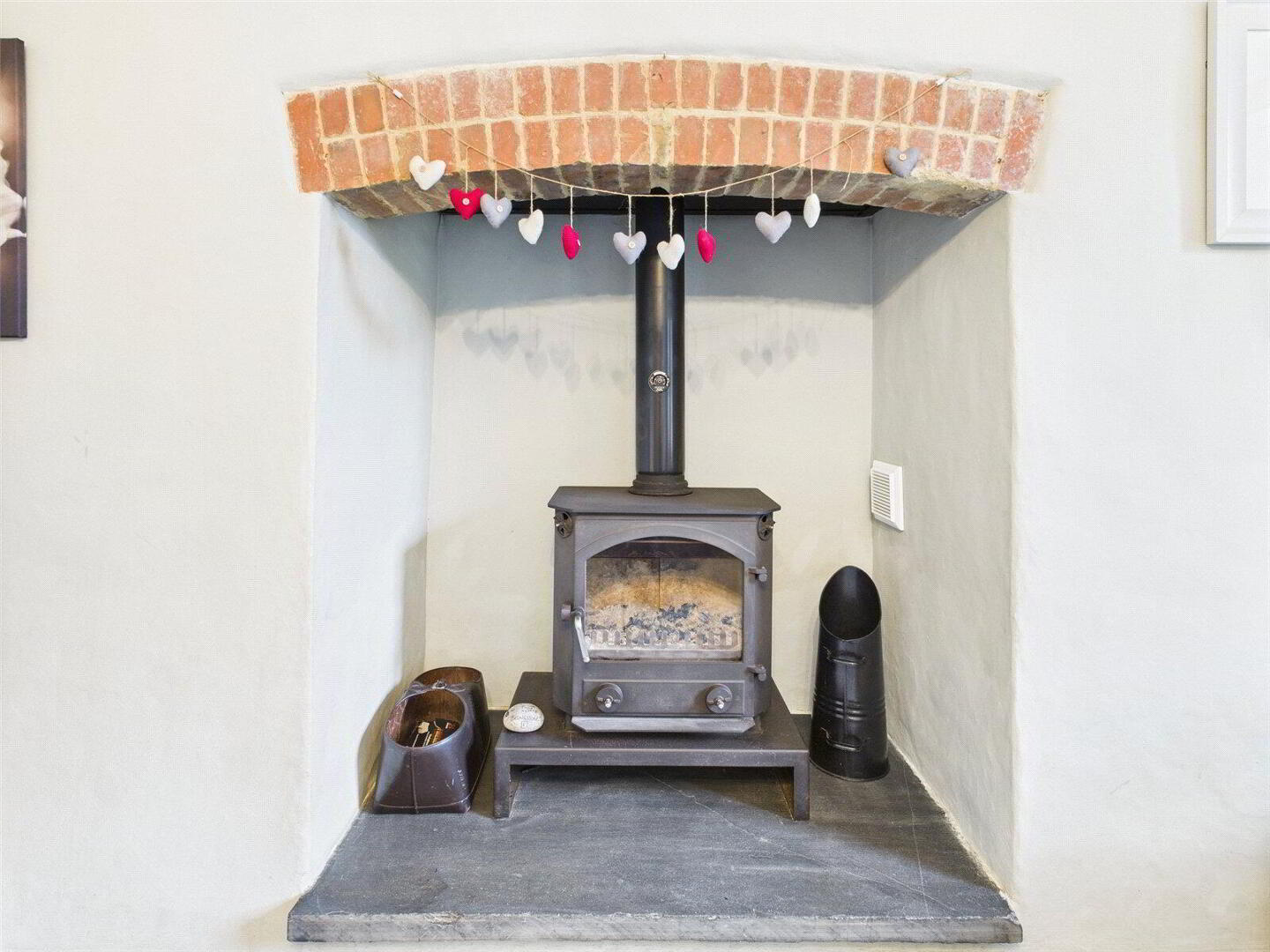 Outside, the property benefits from an enclosed, easy-to-maintain garden that is mainly laid to lawn and surrounded by mature trees, offering privacy and a charming natural backdrop. A gated driveway provides ample parking for multiple vehicles, with additional hardstanding areas suitable for storage or further landscaping should you wish. Hidden to the rear of the property is a secluded garden area featuring a large log store and additional outdoor space ready for you to customise to your own preferences.