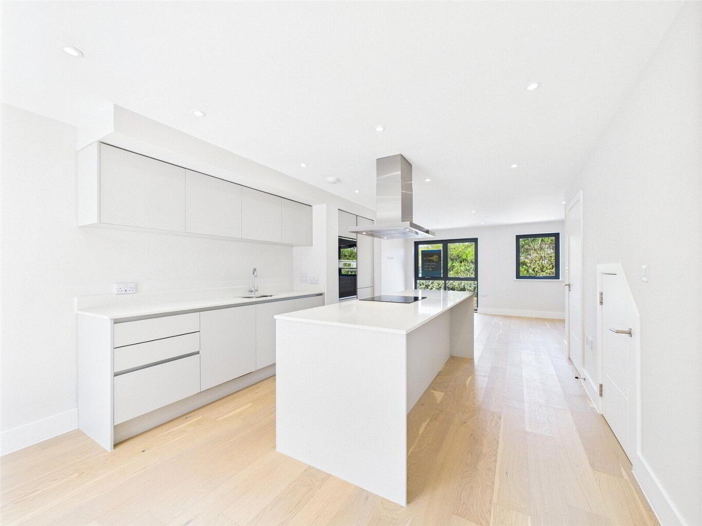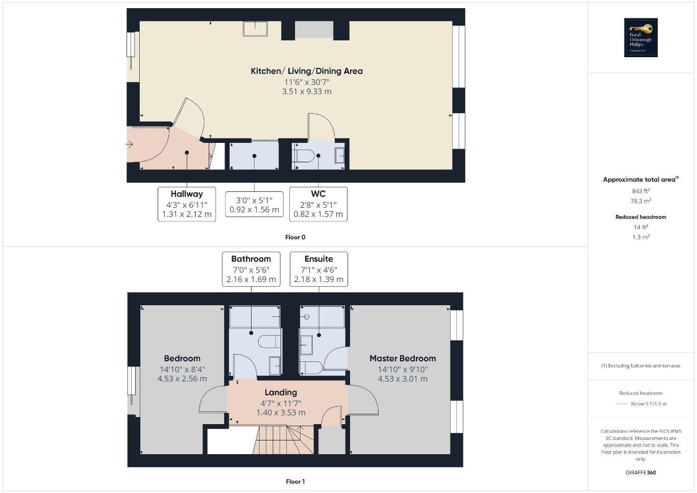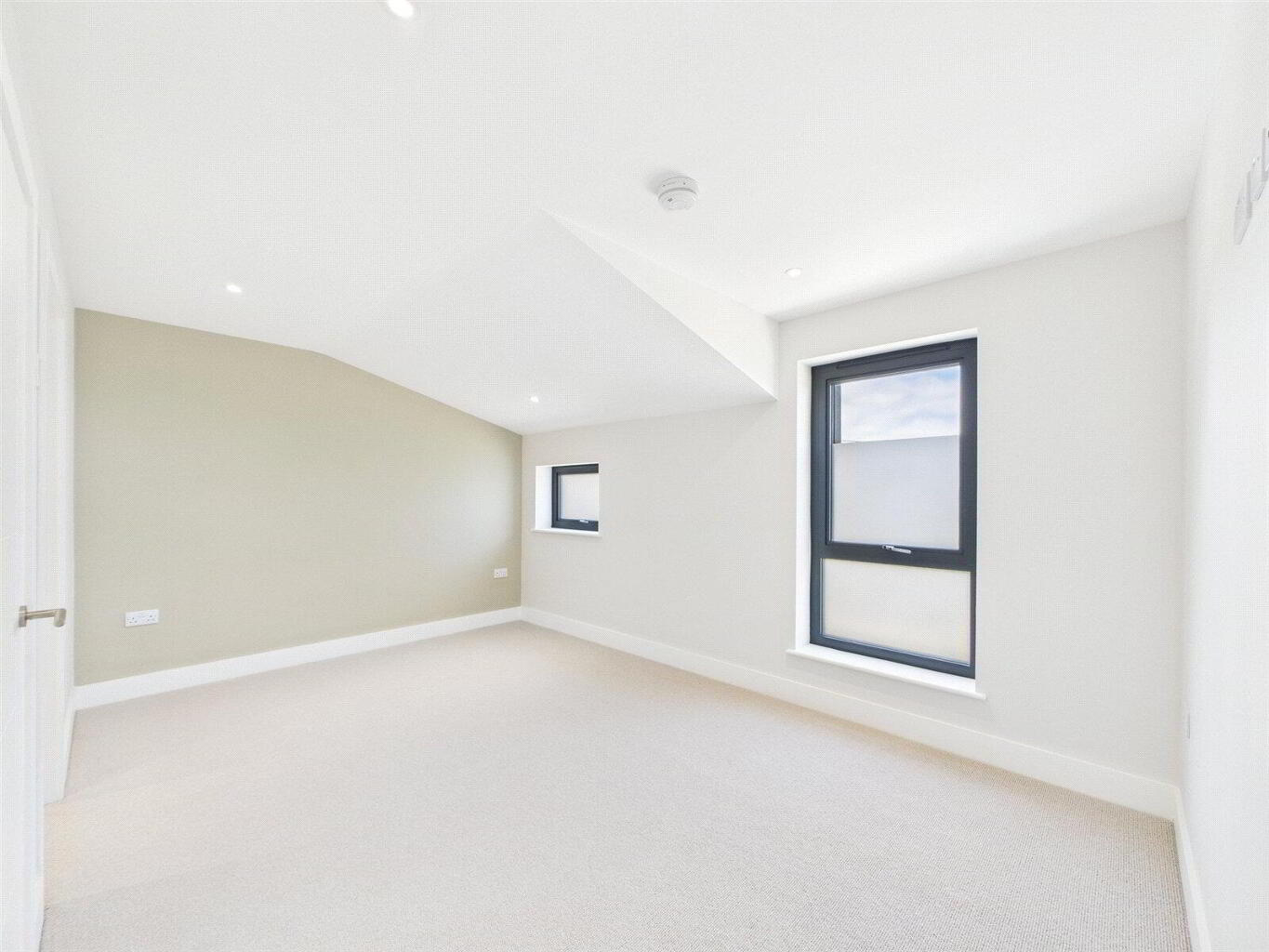 Upstairs, the apartment offers two generous double bedrooms, including a principal suite with a stylish en-suite shower room. A contemporary family bathroom serves the second bedroom, complete with a bath and overhead shower, LED-lit mirror, basin, and W/C—finished to a high standard throughout.