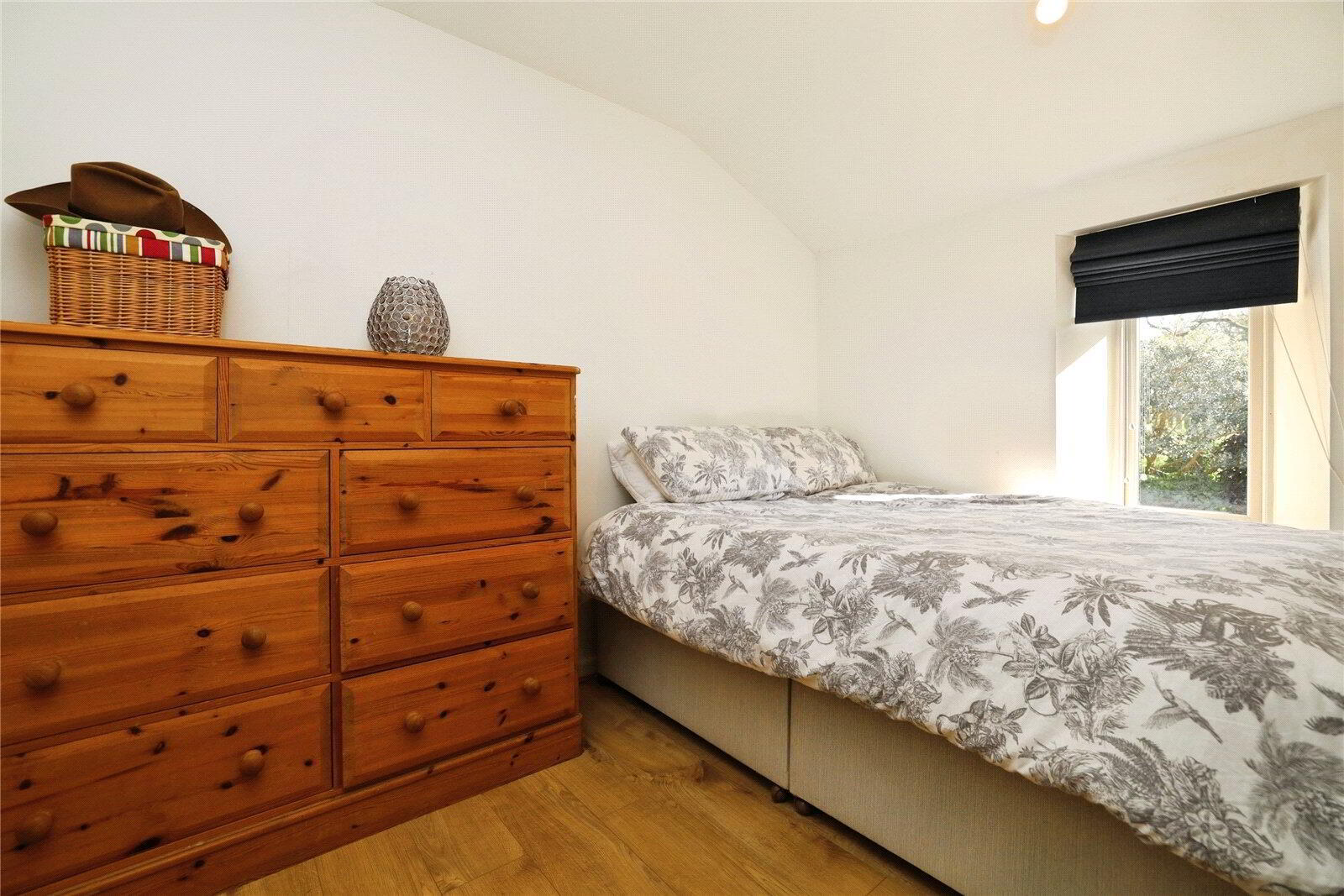 The development offers an attractive communal lawned green to the side, a recreational space for all residents to enjoy, while Tittlemouse itself is enclosed by a high picket fence affording an excellent degree of privacy. The garden to the front has been thoughtfully designed for low-maintenance with stone chippings creating a lovely space to relax which is complemented by a small raised lawn. A decked area to the side of the property provides a further space to sit and soak up the peaceful surroundings and birdsong. The garden also has a handy storage cupboard for recycling and outdoor items whilst to the rear of the property there is further communal garden space.