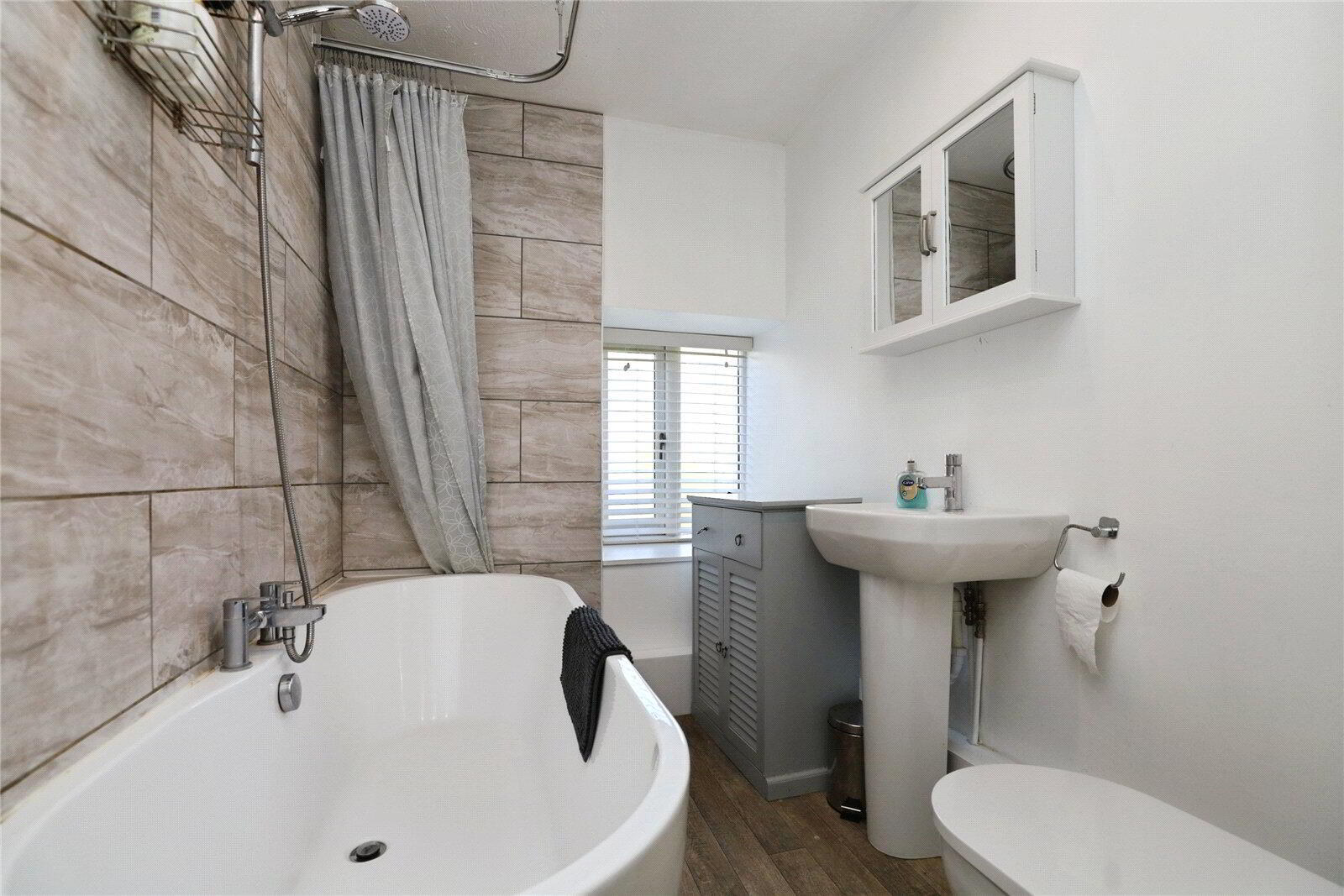 The property offers 2 generously sized double Bedrooms and a stylish, contemporary Bathroom fitted with a freestanding bath with shower over, pedestal wash basin and WC, all finished with modern downlighting. A separate Utility Room adds to the practicality, providing additional work surface, a sink and space for a washing machine, tumble dryer and freezer.