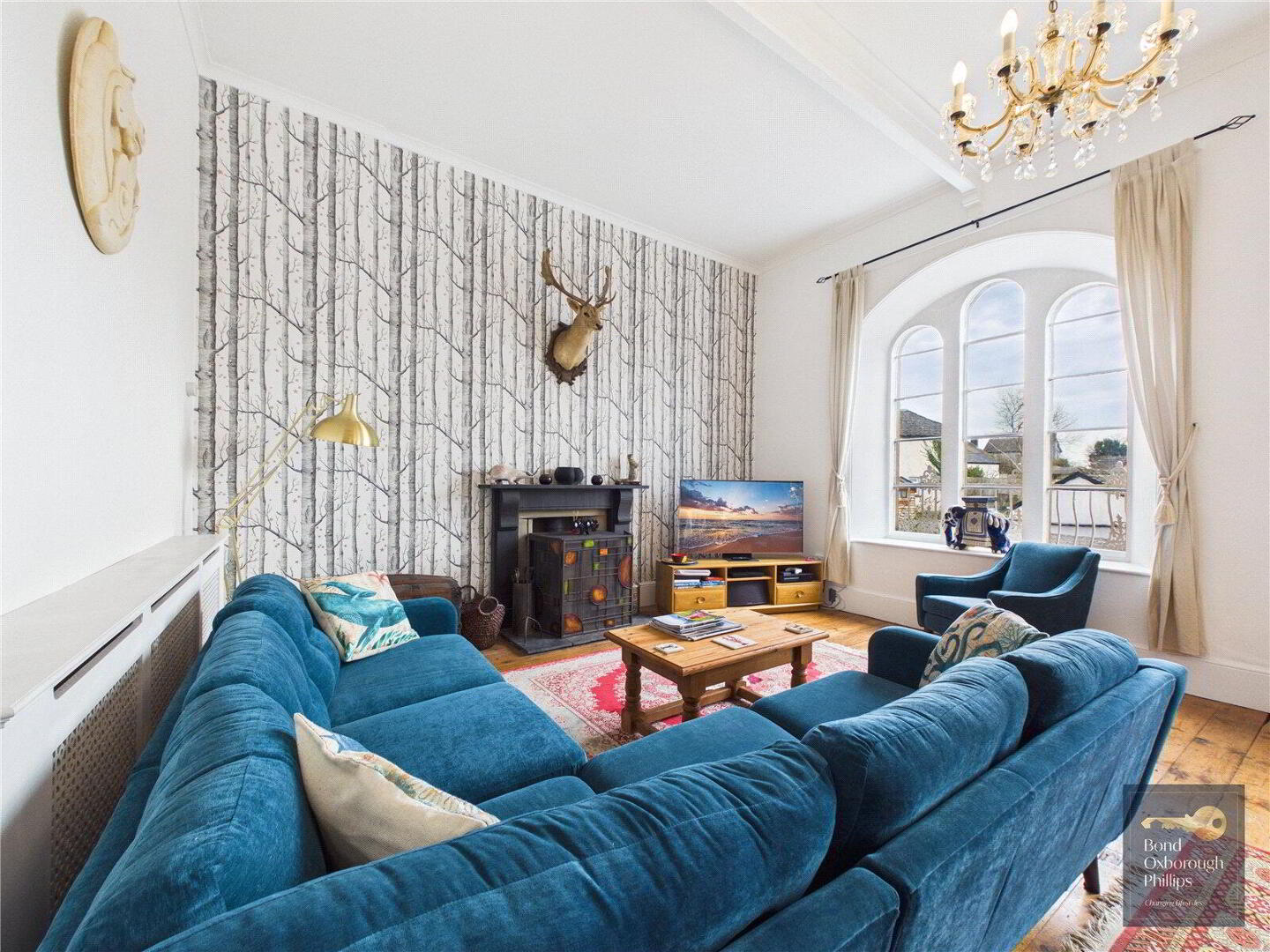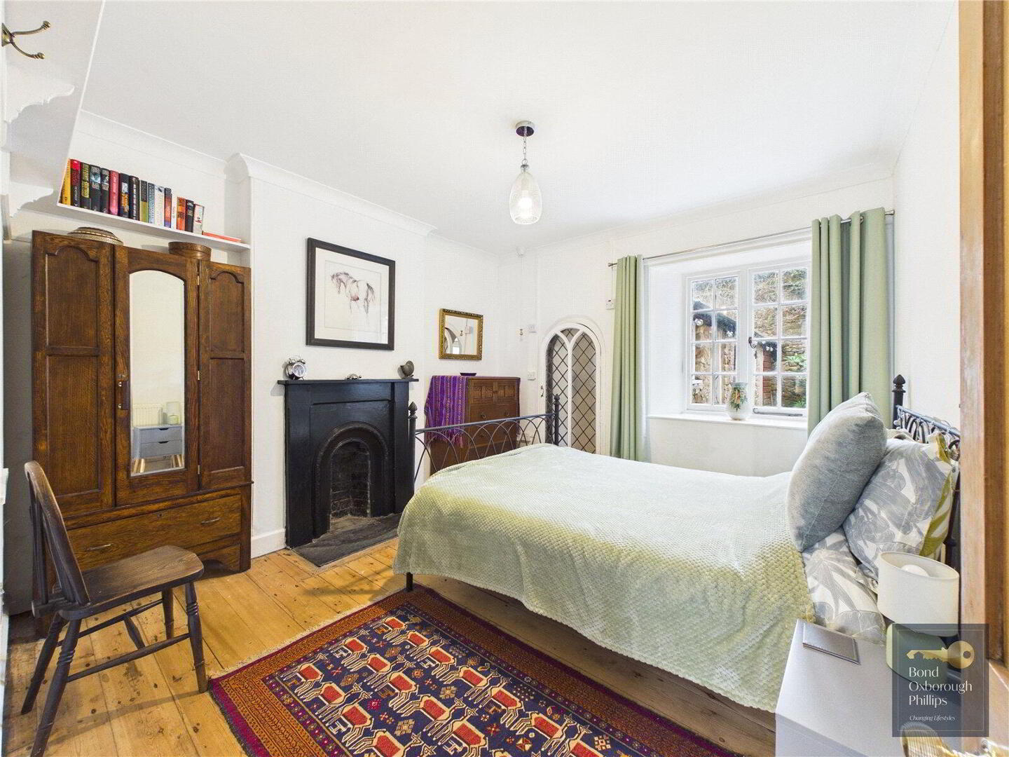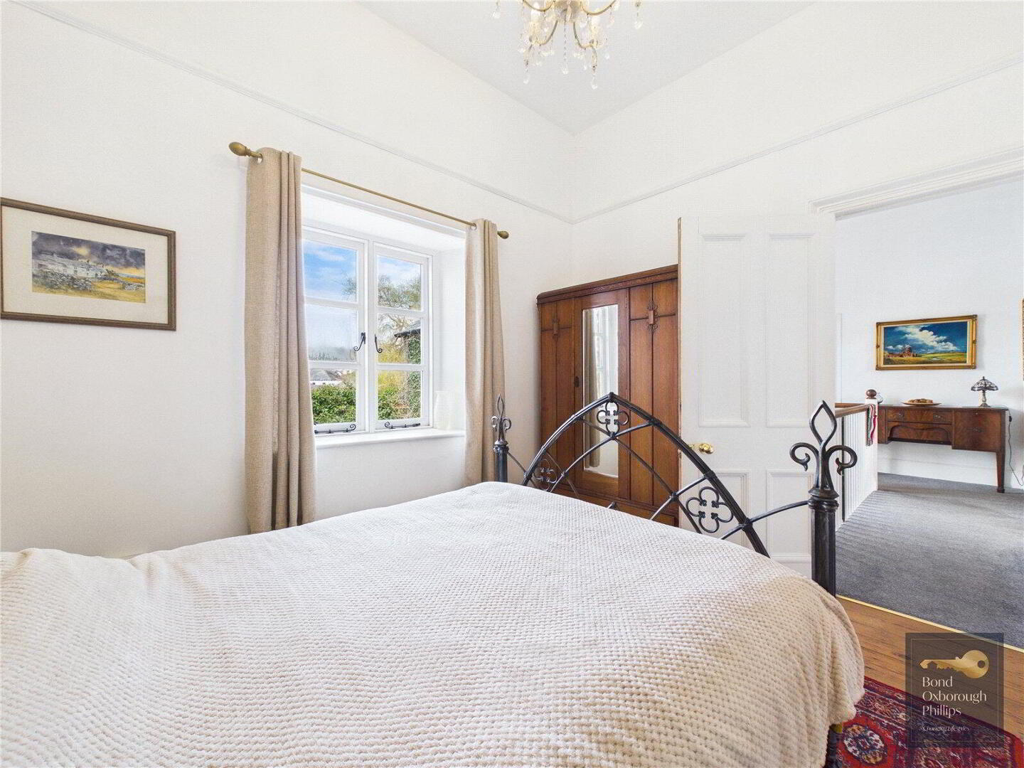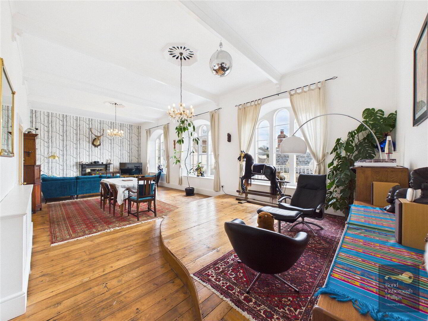 Moving back inside, the ground floor continues to surprise with the extremely versatile Sitting room, bedroom and ensuite shower room. So useful for visiting guests, family members of all ages to have their own private wing, and most importantly it adds longevity because the home can be used on one storey – if needed. And of course, income if wanted. If the sitting room was reserved or let, where else could one entertain and relax? The former Courtroom. Approaching 40 feet, it features three huge arched windows and a large fireplace as well as the raised corner where the judge would once have sat. There are two doorways to access this amazing space from both the first floor landing, and the former robing room – now a large bedroom. The inner landing leads you to three further generous bedrooms and an attractively fitted (of the period) bathroom which completes the large interior.