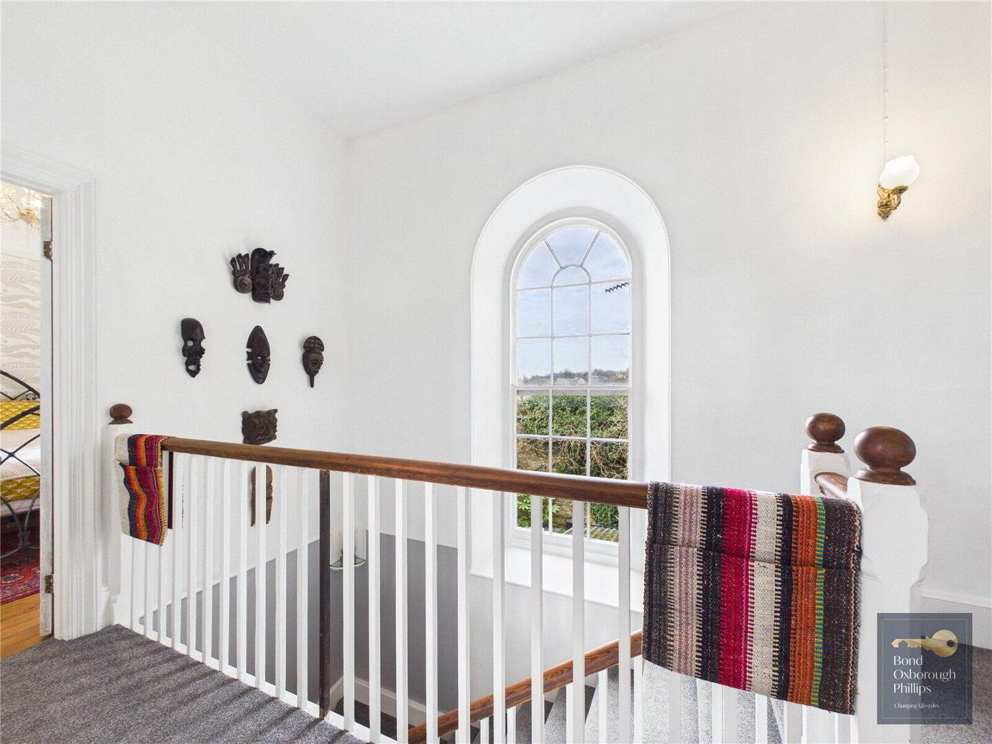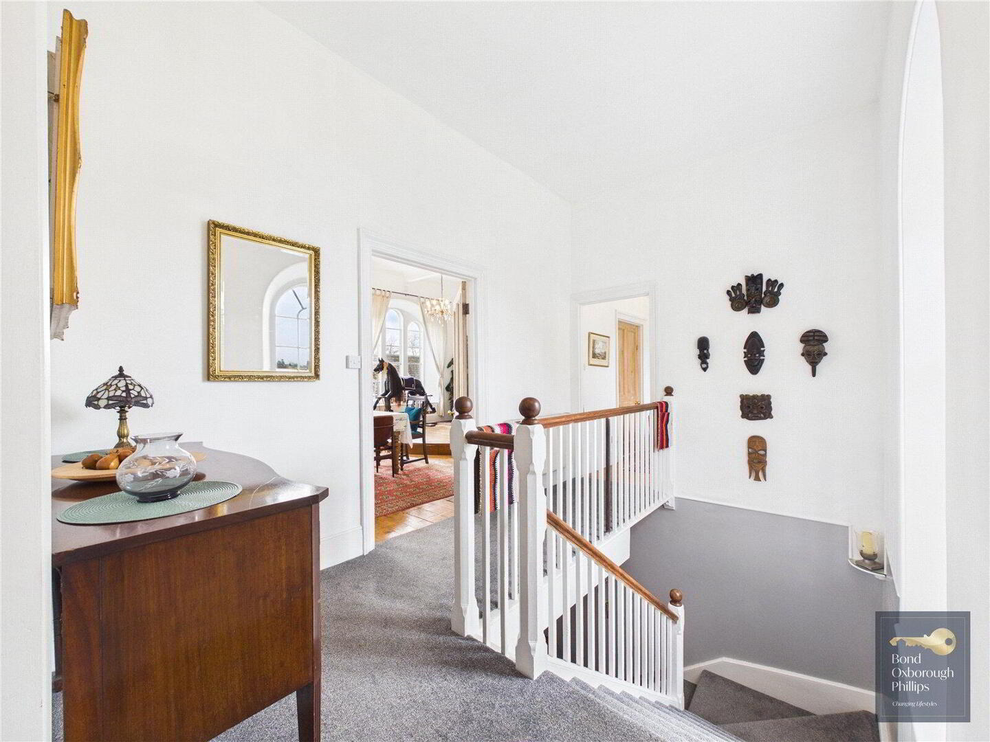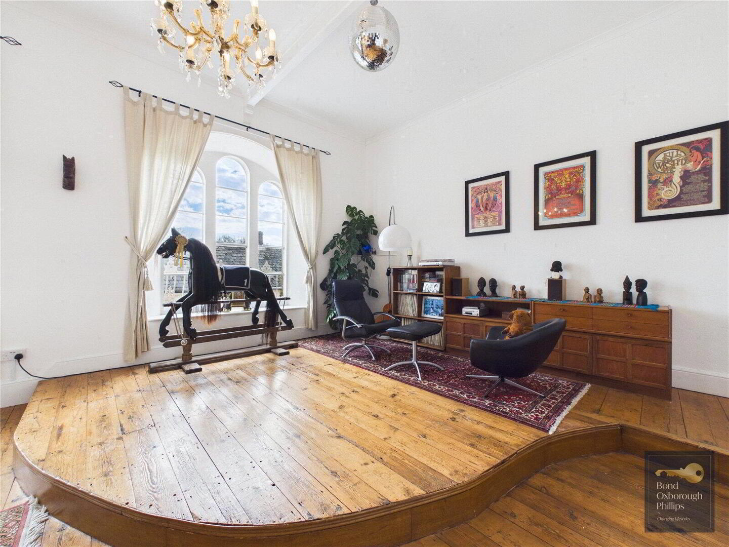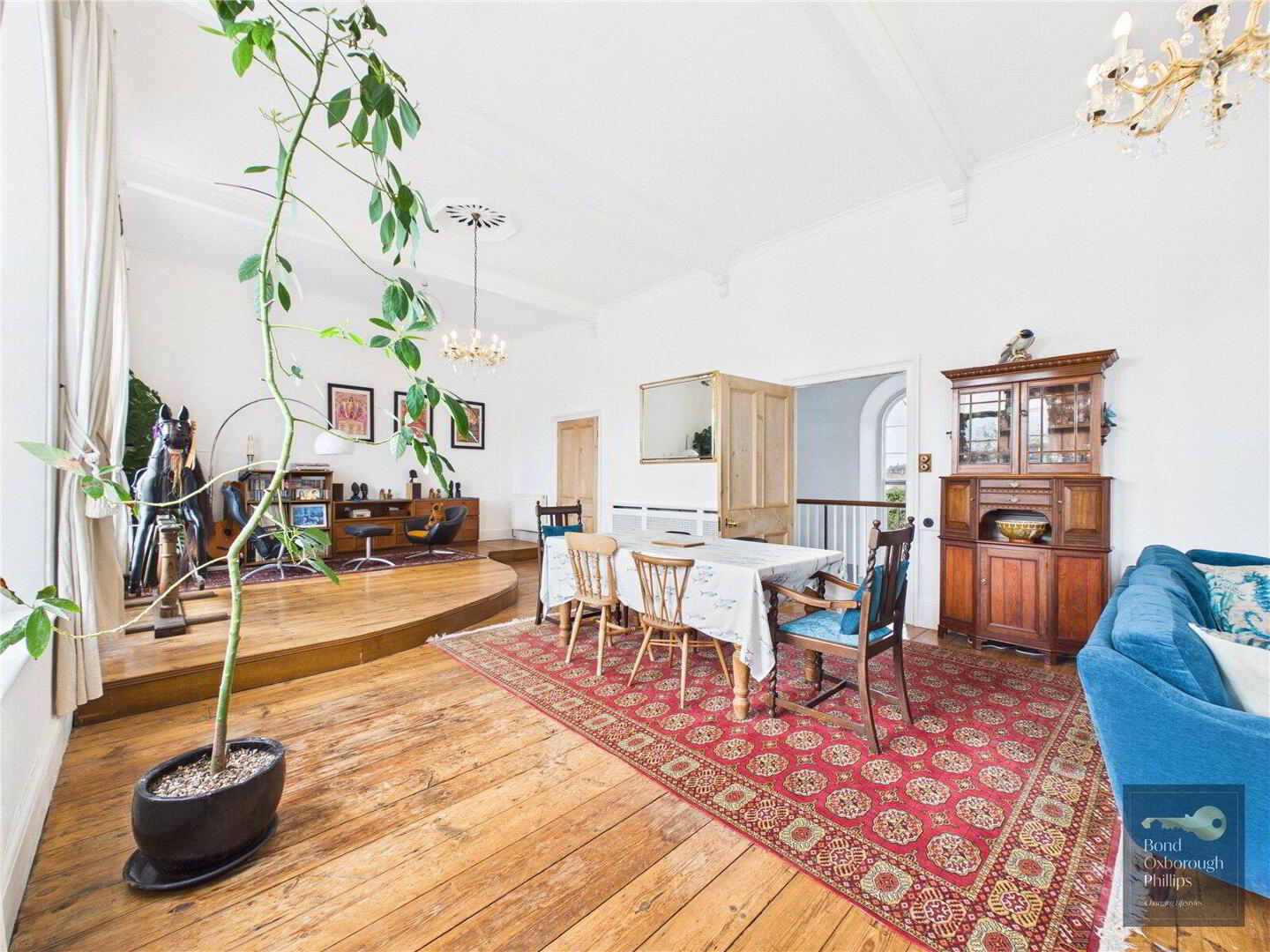 Moving back inside, the ground floor continues to surprise with the extremely versatile Sitting room, bedroom and ensuite shower room. So useful for visiting guests, family members of all ages to have their own private wing, and most importantly it adds longevity because the home can be used on one storey – if needed. And of course, income if wanted. If the sitting room was reserved or let, where else could one entertain and relax? The former Courtroom. Approaching 40 feet, it features three huge arched windows and a large fireplace as well as the raised corner where the judge would once have sat. There are two doorways to access this amazing space from both the first floor landing, and the former robing room – now a large bedroom. The inner landing leads you to three further generous bedrooms and an attractively fitted (of the period) bathroom which completes the large interior.