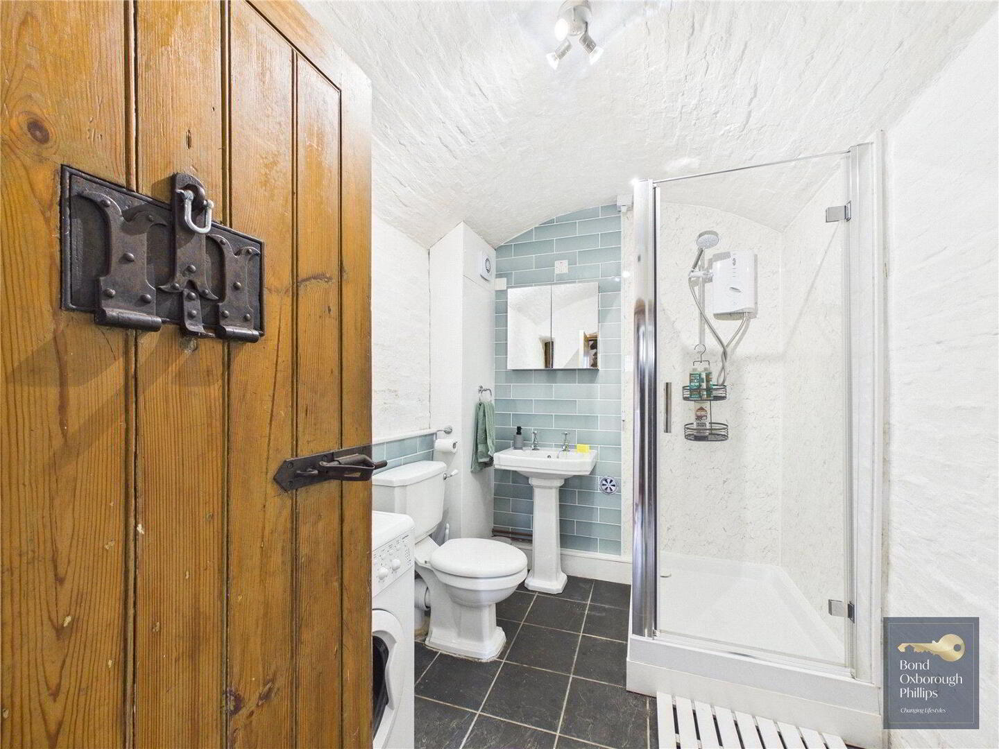 There is no date stone to tell us exactly, but it is thought to have been built in the mid to late 19th Century as the Police Station and Court House and remained in this role until the mid-1960’s. It is grade 2 listed and has since been the home of influential towns people, retired police officers, housed multi-generational families and provided others with income from traditional Bed and Breakfast and more recently, Airbnb. Having been well looked after – much of the history is preserved and one is welcomed into a grand entrance hall with well-trodden original quarry tiled floor, a wide turning staircase, an original fitted bench where visitors would wait, often to see the on-duty sergeant, who could be met through the stable door which now leads to the dining room. The dining room flows to the kitchen/ Breakfast room which is modern and features a centre island block and breakfast bar, and in turn flows to the pantry. From here we step down to the inner hall – and to the old holding cells. Within the cells there are exposed stone elevations, arched brick ceilings, iron barred slit windows and original doors with iron work and viewing holes. Repurposed (naturally) as a stunning shower room and a useful utility room. The rear lobby connects the inner hall back to the grand entrance and annex, but not forgetting the split doors to the walled courtyard garden.