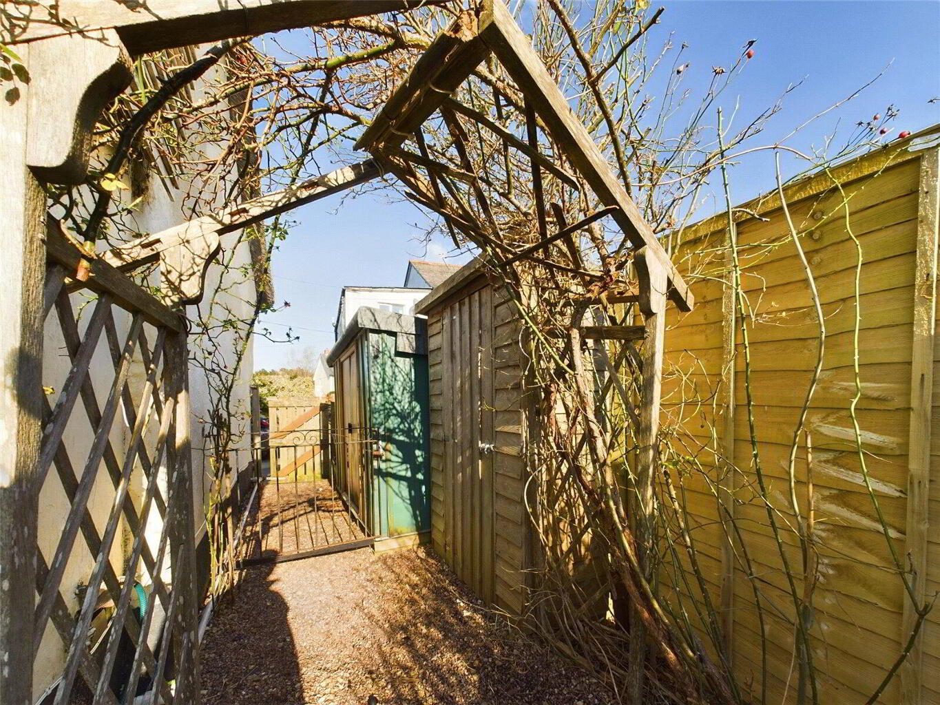 Externally, a gravelled parking area to the right of the property provides private off-road parking for one vehicle. A double gate on the left-hand side allows easy access to the rear garden, a deceptively generous outdoor space designed for low-maintenance enjoyment. A combination of decking and artificial turf creates a practical yet inviting setting, with multiple seating areas ideal for relaxing or entertaining. The inclusion of a summerhouse further enhances the usability of the garden, making the most of the outstanding views stretching across the surrounding landscape, including Dartmoor National Park.