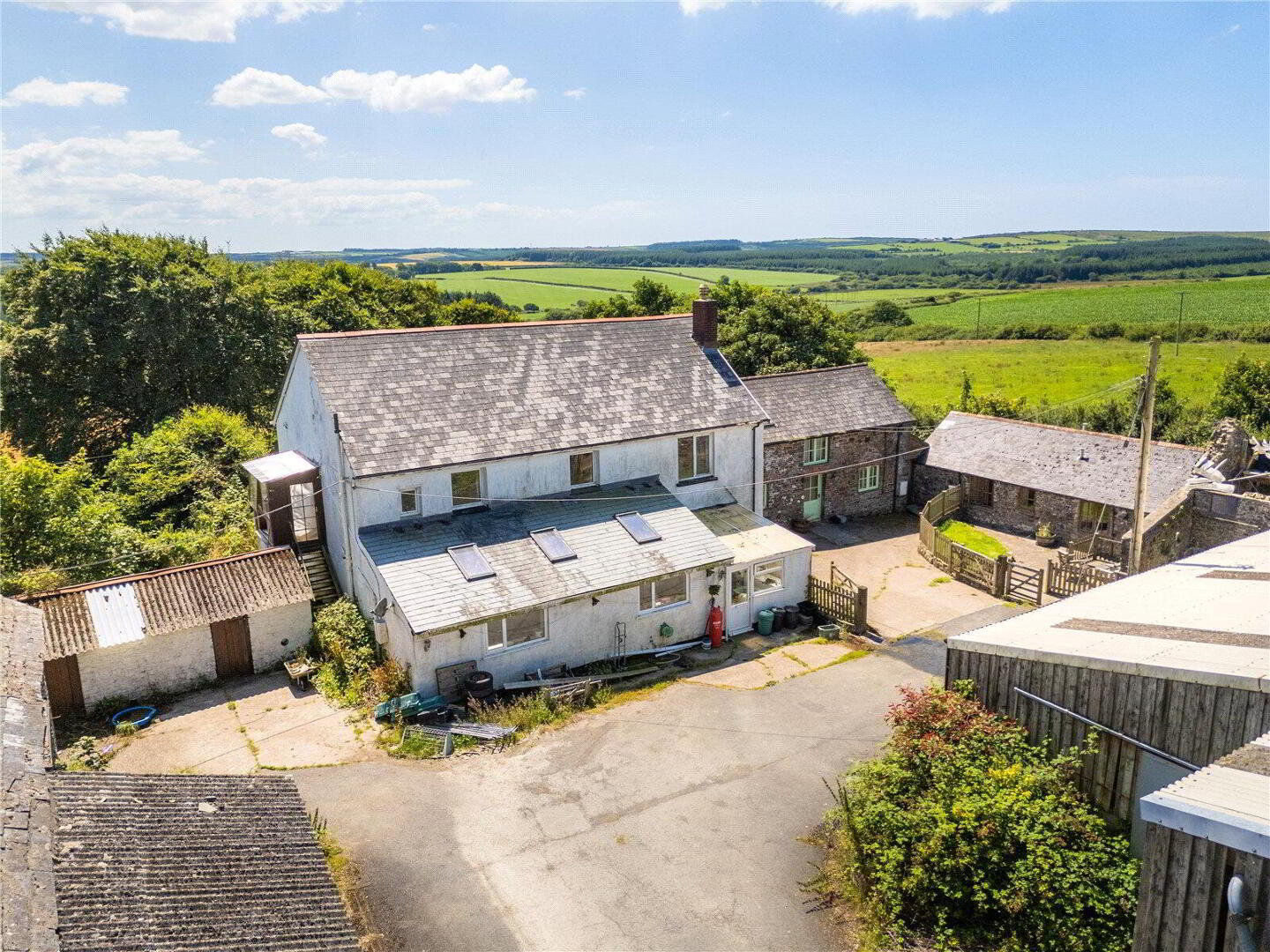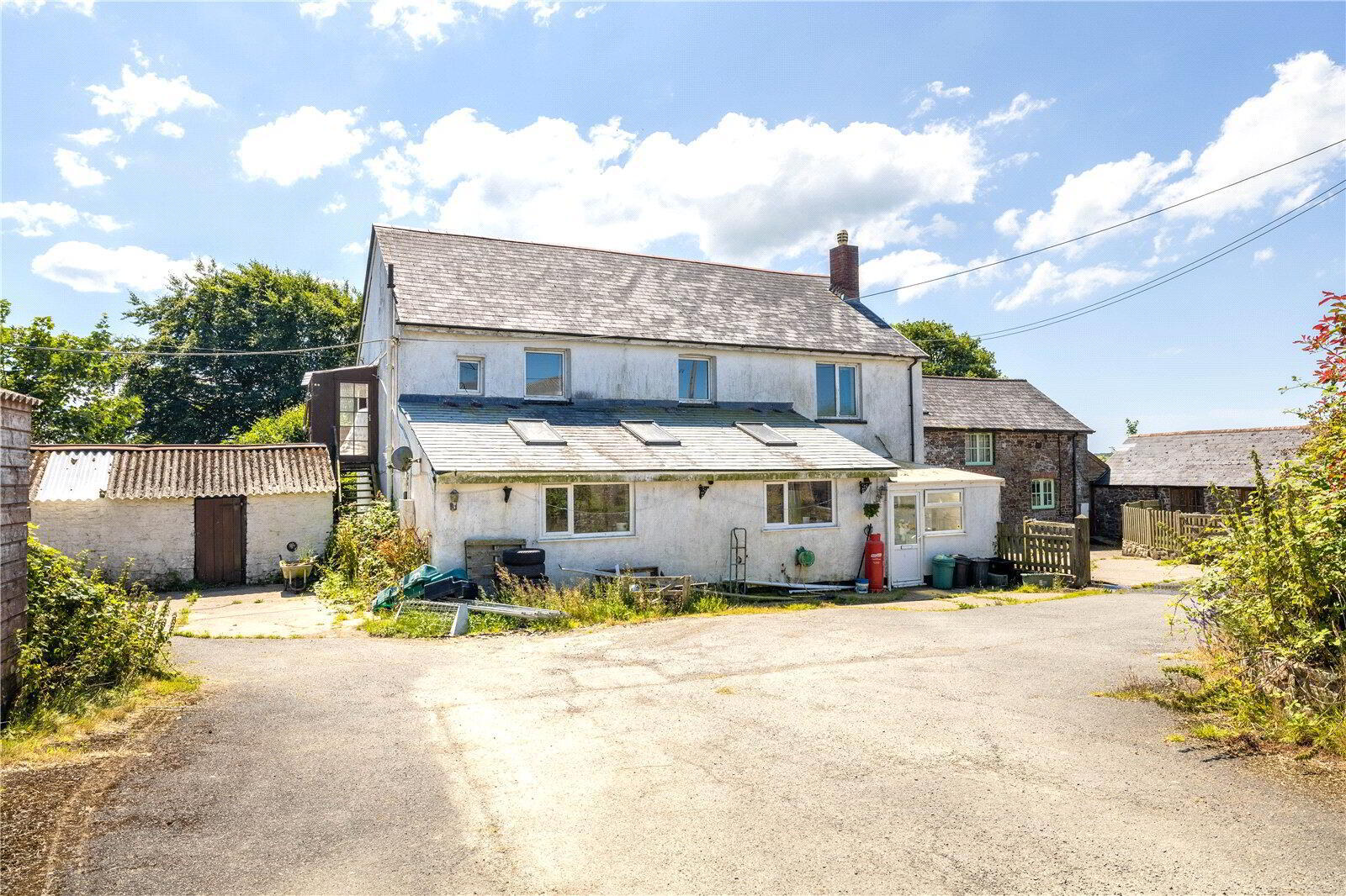 Secluded 5-bed farmhouse near Woolsery with 2 holiday cottages, extensive outbuildings, 12 acres, superb countryside views, ideal for equestrian, smallholding or business, renovation opportunity.