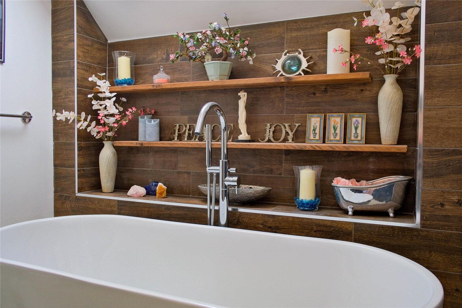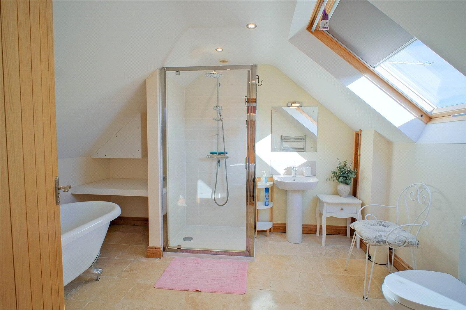 The ground floor centres around 2 generous Reception Rooms, both featuring log burners that form natural focal points and make the spaces ideal for year-round use. The main Lounge / Diner is perfectly proportioned for entertaining and everyday family life, while a separate Sitting Room offers a more intimate retreat, with doors opening directly onto the surrounding gardens and countryside beyond. The Kitchen is well-suited to hosting and family use, with a vaulted ceiling that floods the space with natural light and enhances the feeling of openness. A useful Utility Room and a ground floor Shower Room complete the lower level, adding further convenience and flexibility.