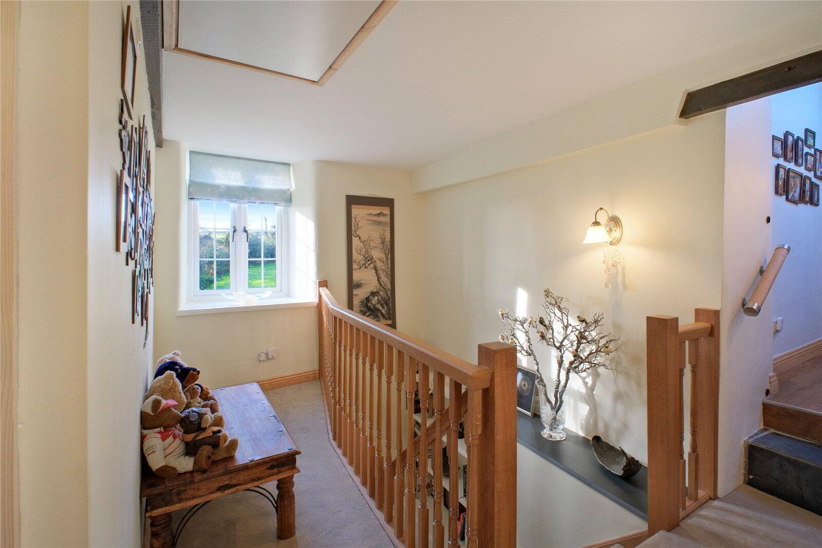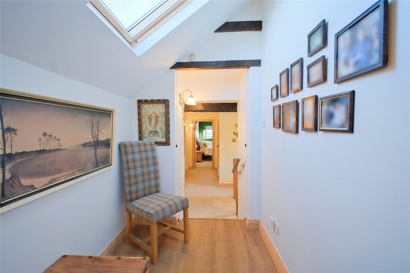 Upstairs, the first floor provides 3 well-proportioned Bedrooms, each enjoying pleasant outlooks, alongside a Family Bathroom. From the landing, a large hatch leads to a spacious Loft Room illuminated by Velux windows, offering excellent storage or scope for use as a hobby room or home office. In addition, extensive eaves storage is accessed from the landing, ensuring the home remains as practical as it is characterful.