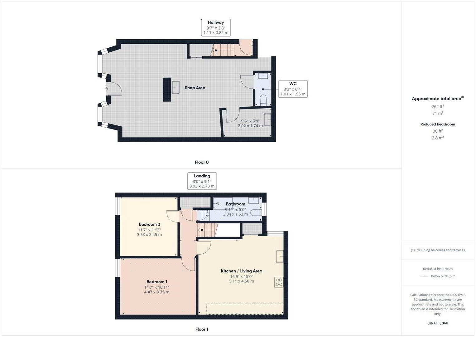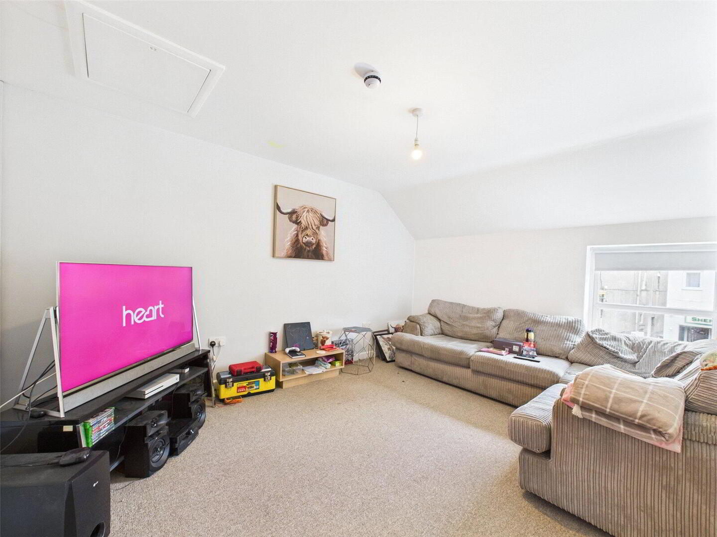 Upstairs, the 2-bedroom apartment boasts a bright and airy open-plan kitchen/diner/living room, featuring modern units with work surfaces, built-in oven with extractor fan over, and space for a washing machine. Large windows and a Velux skylight flood the space with natural light, creating a warm, welcoming atmosphere. The apartment also includes two generous double bedrooms, both with front-facing windows, a family bathroom with a walk-in shower, wall mounted heated towel rail, low flush WC and pedestal hand basin. All rooms are accessible via the upstairs landing which also provides a useful storage cupboard.