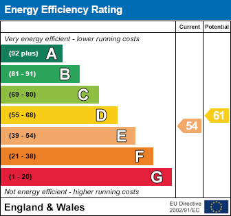 The EPC rating for the property is currently an 'E' (54) with potential to increase to a 'D' (61).