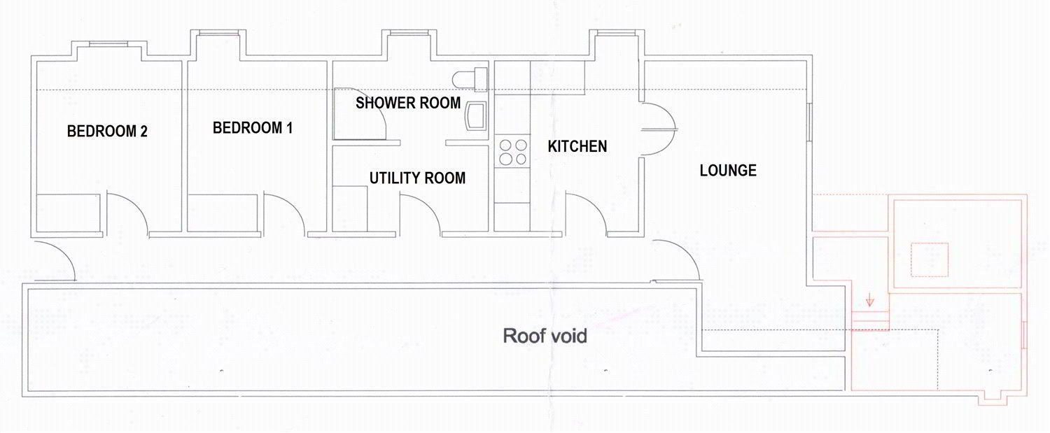- Vinyl floor. PVCu double glazed window to side. Cupboard housing electric water heater. Shower cubicle with an electric shower and tiled splashbacking. Low level WC. Wash hand basin with vanity unit below. Tiled splashbacking. Wall mirror. Light/shaver unit. Heated towel rail. Infrared panel heater. Please note, there is an area measuring approximately 11'0 x 11'0 (3.35m x 3.35m) which has great potential for conversion to create a third bedroom or study subject to the necessary planning consents. (Please refer to the Floorplan and the area marked in red)