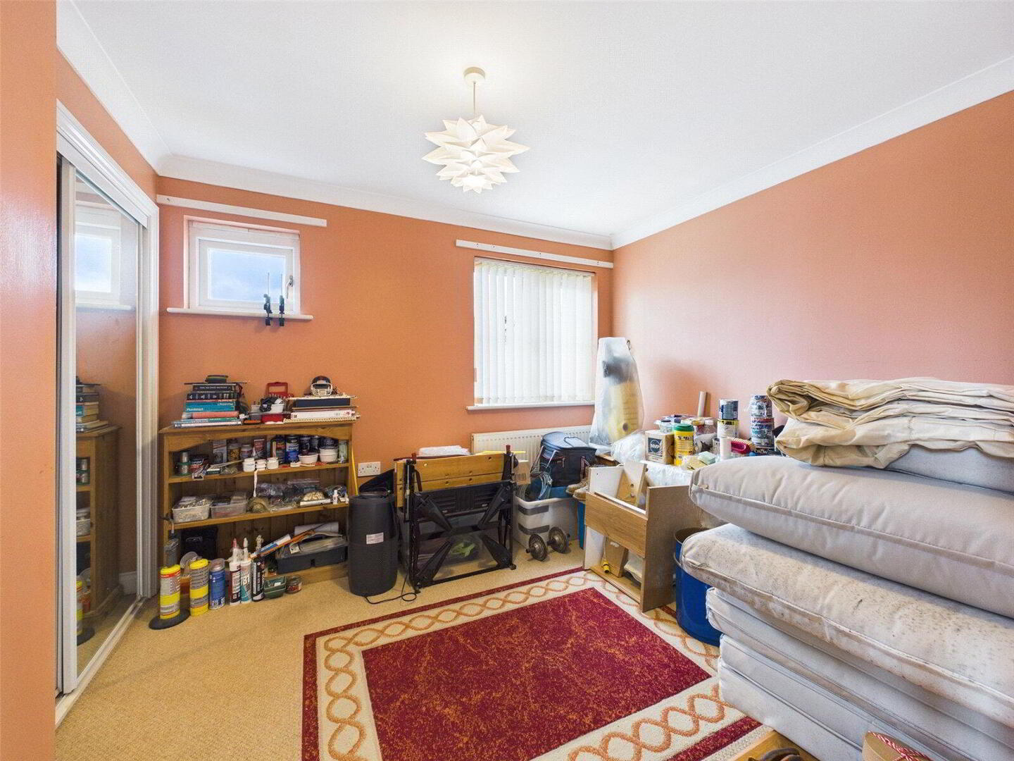 To the first floor are two well-proportioned double bedrooms, one of which benefits from built-in storage. The accommodation is completed by a family bathroom suite comprising a panelled bath with shower over, low-level WC and wash hand basin.