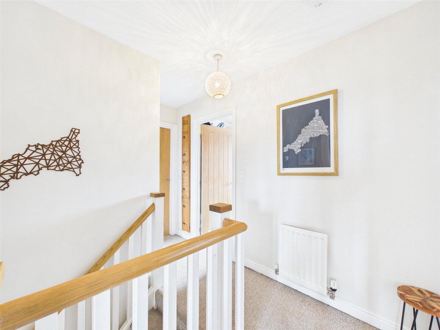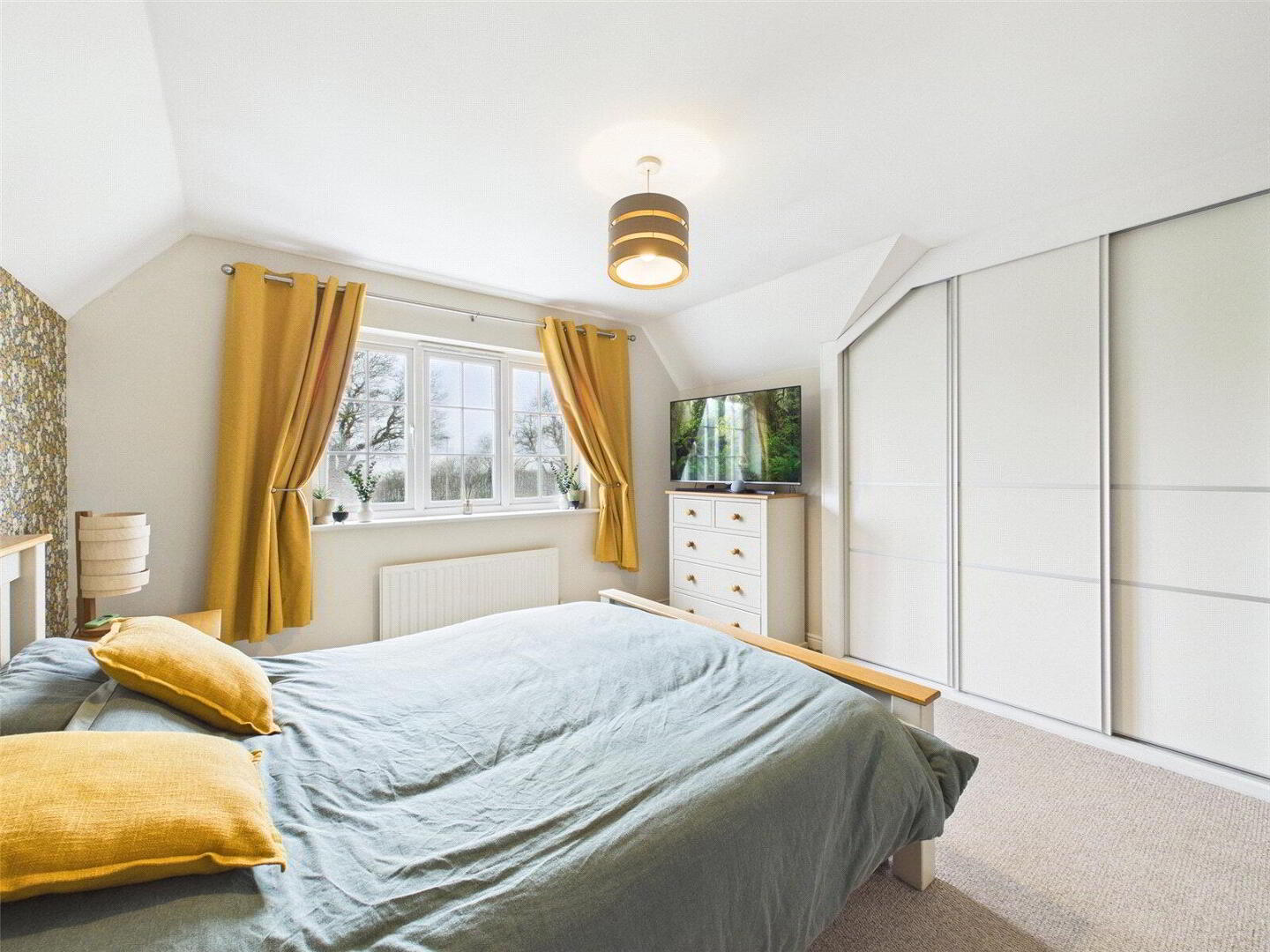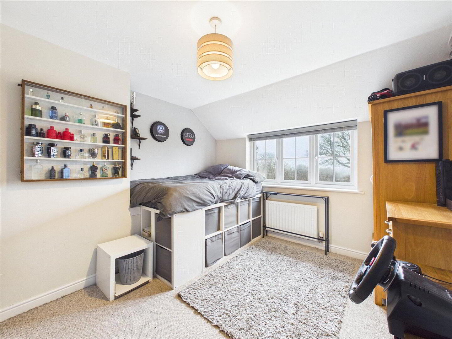 Upstairs, the property continues to impress with well-proportioned and stylishly presented accommodation. The principal bedroom benefits from a generous built-in storage unit and a contemporary en-suite shower room, comprising a walk-in shower, low-level W.C., and wall-mounted wash basin. The modern family bathroom is equally well-equipped, featuring a bath with shower over, wall-mounted basin, heated towel rail, and W.C. Two further spacious double bedrooms, along with a versatile single bedroom or home office, complete the first floor. An additional storage cupboard provides practical space for linens and towels.