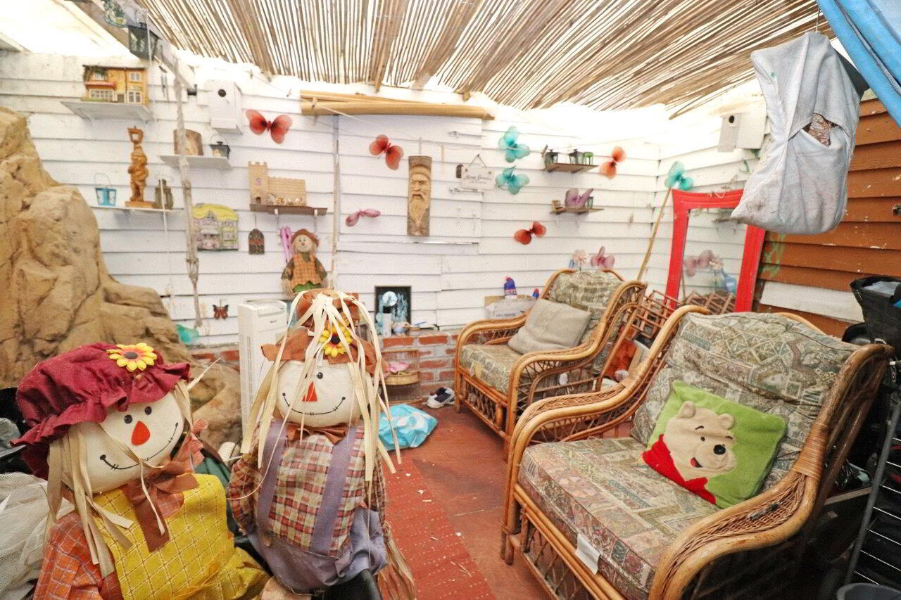 Timber framed construction with a polycarbonate roof. Side pedestrian door. This could easily be converted to a more substantial structure, subject to the necessary consents, or could equally be removed for those requiring more outside space.