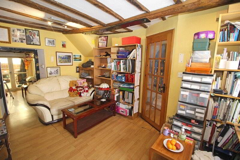 This charming reception room is full of character with exposed beams. Stone effect fireplace housing a woodburning stove. PVCu double glazed window to front. TV point. 2 telephone points. Laminate wood flooring.