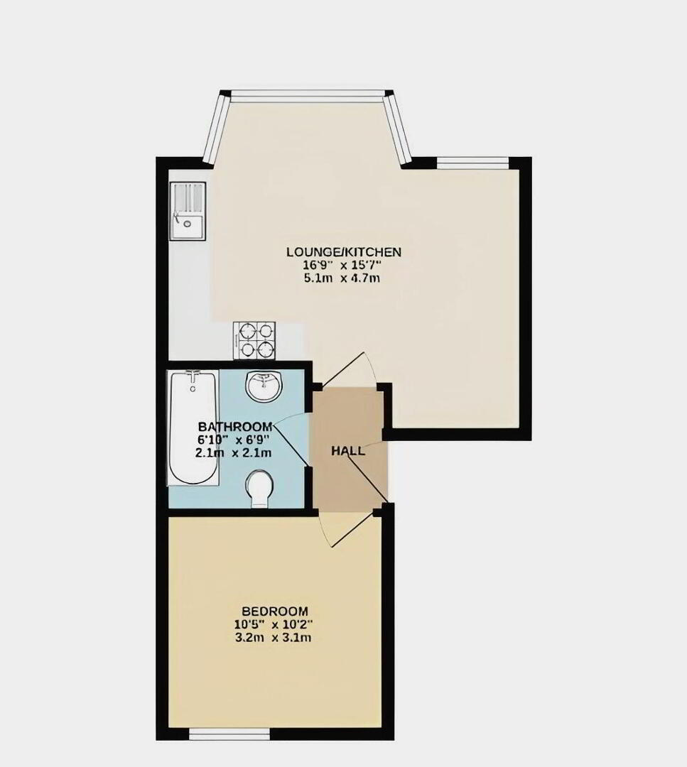 The bedroom is a good size, and the property includes a modern bathroom with a neat finish.