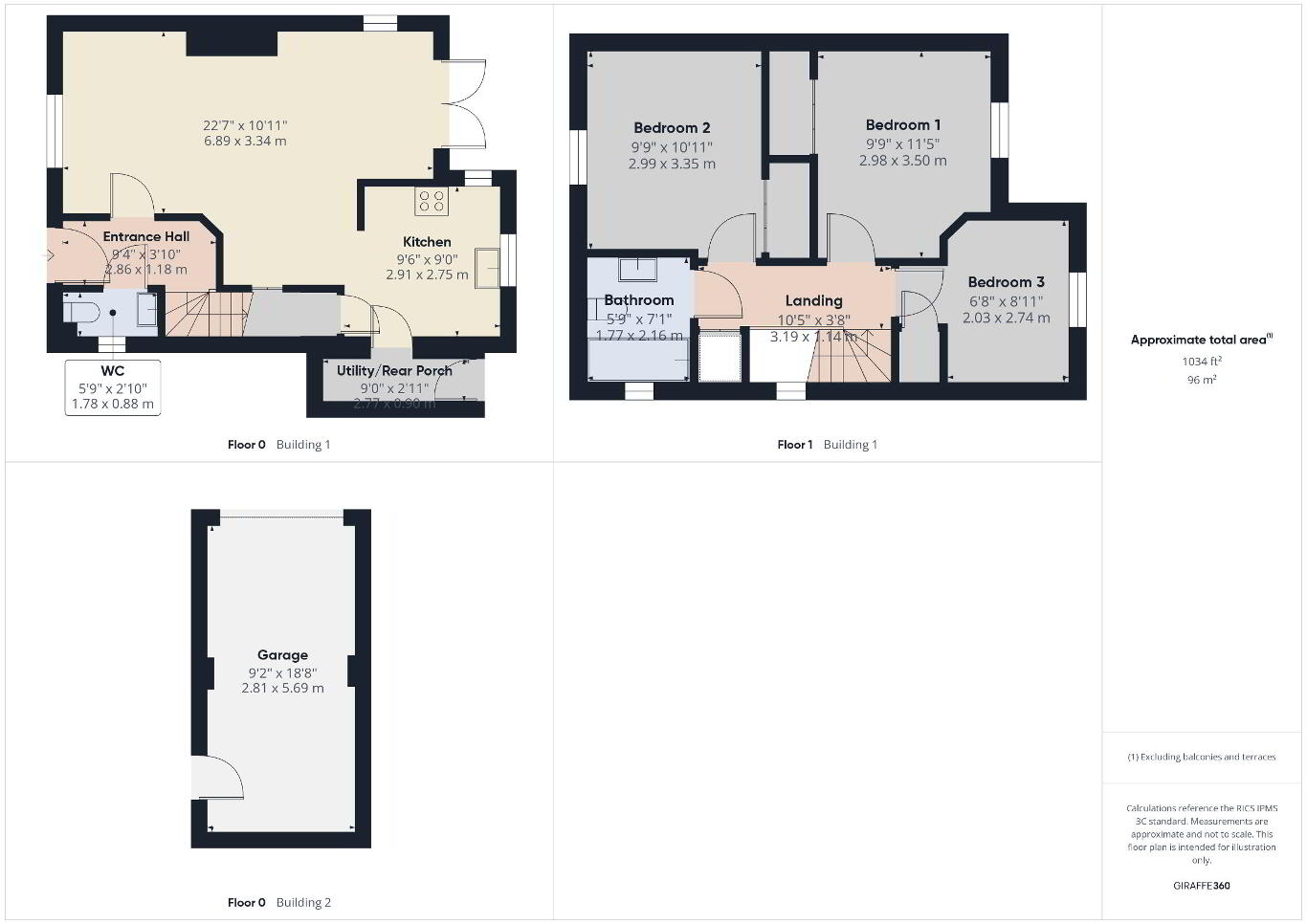 Comprising an enclosed panel bath with shower over, low level WC and pedestal hand wash basin. Frosted window to the side elevation. - Garage