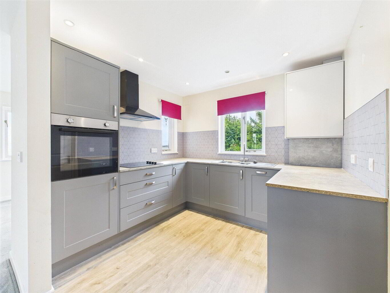 A range of base units with laminate square edge worktops over incorporating a stainless steel sink/drainer unit with mixer tap and 4 ring electric hob with extractor hood over. Integrated eye level double oven and dishwasher. Space for fridge/freezer. Windows to side and rear elevation. Door to utility/rear porch. - Utility/Rear Porch