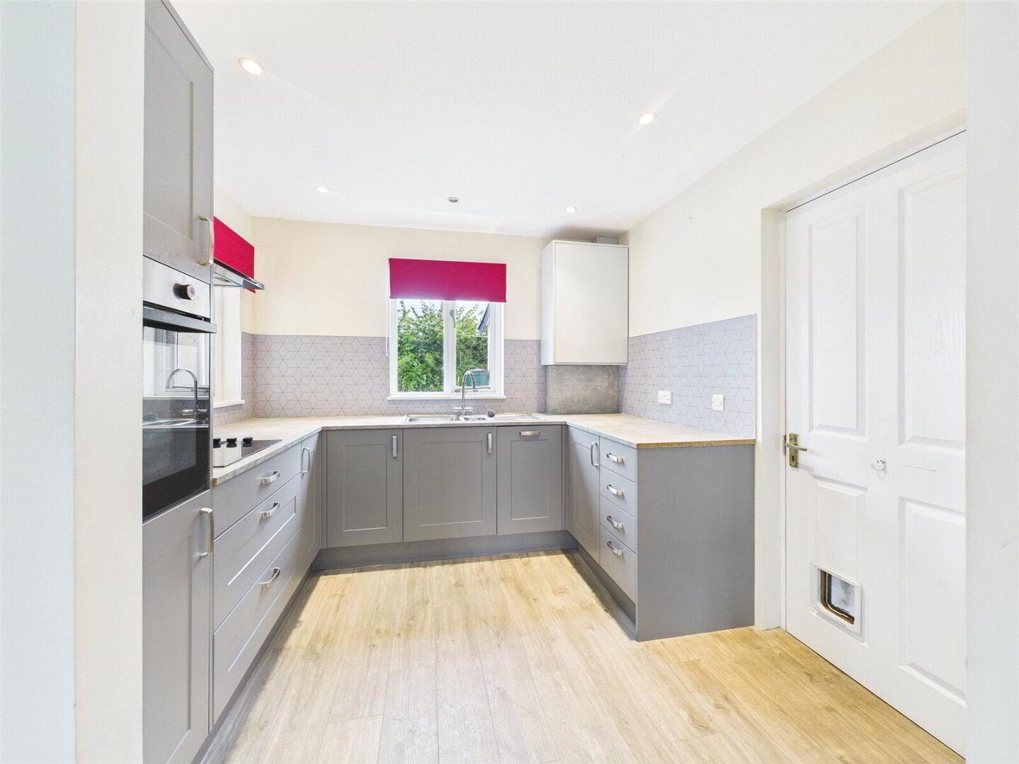 A range of base units with laminate square edge worktops over incorporating a stainless steel sink/drainer unit with mixer tap and 4 ring electric hob with extractor hood over. Integrated eye level double oven and dishwasher. Space for fridge/freezer. Windows to side and rear elevation. Door to utility/rear porch. - Utility/Rear Porch