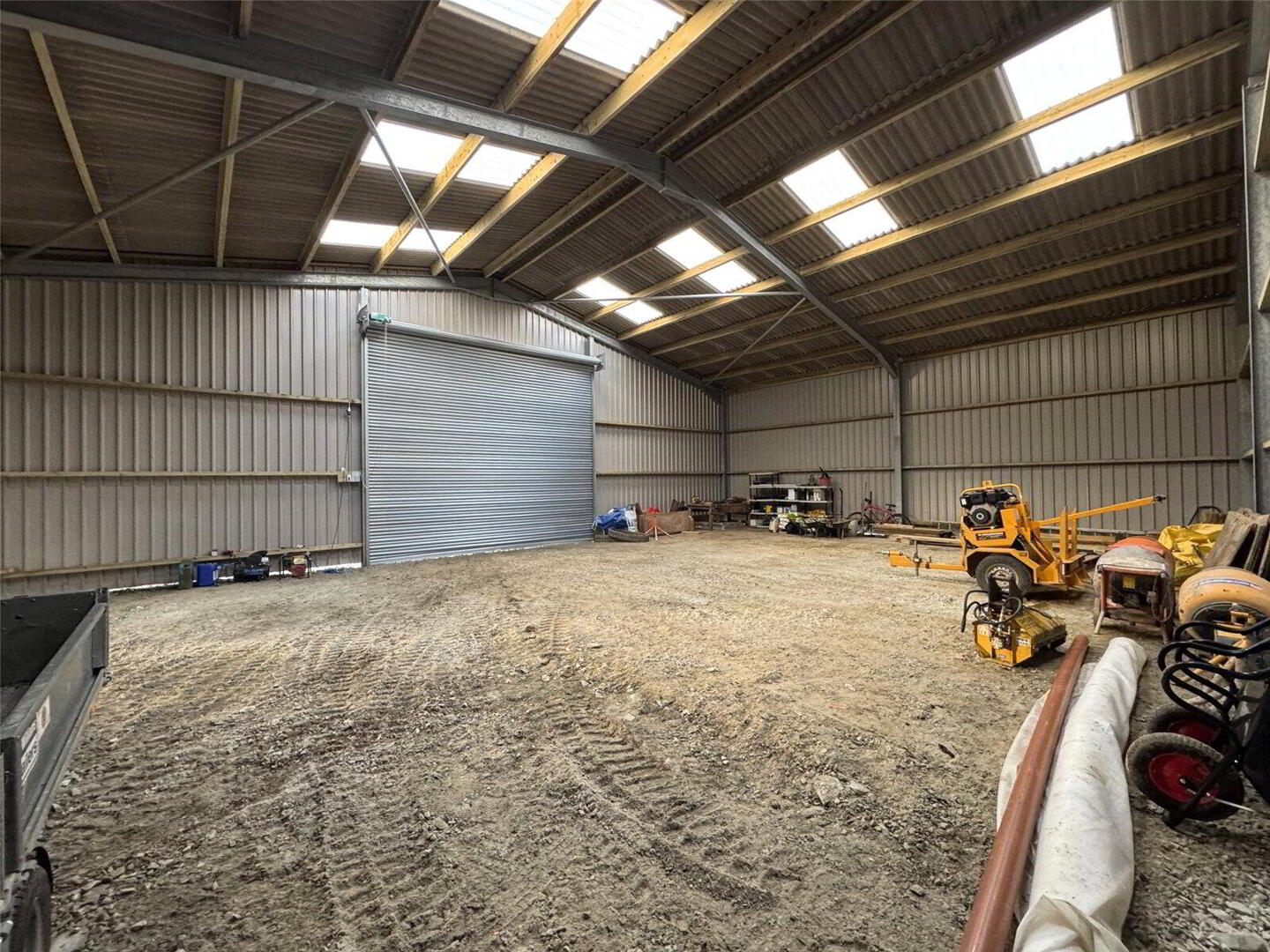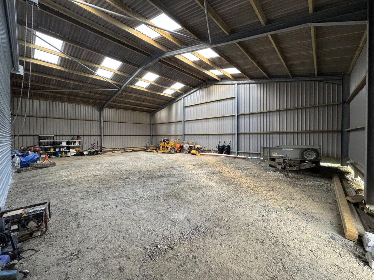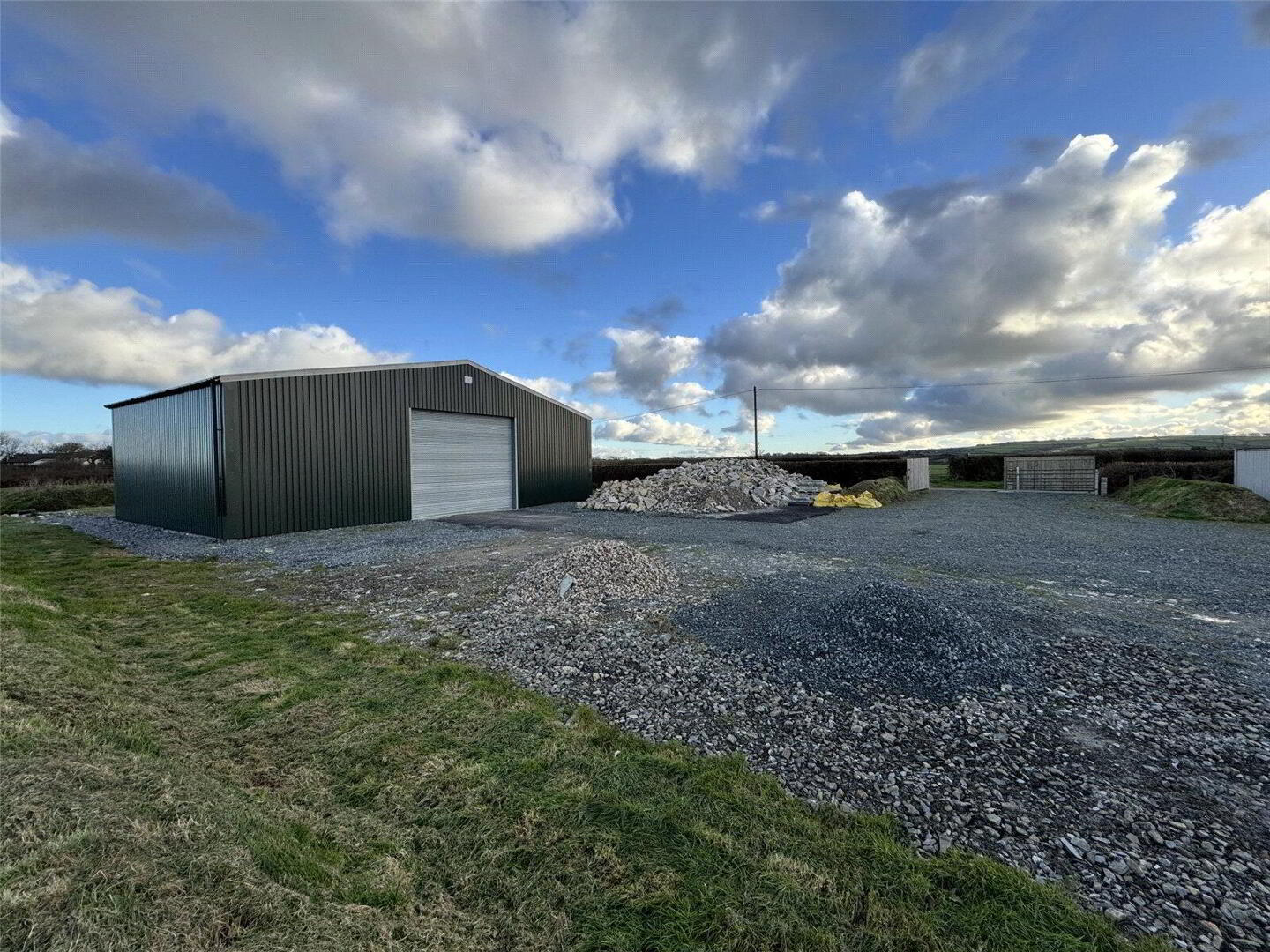 Conveniently situated just over a mile from the A39, at the end of a no-through road, this attractive parcel of land extends to approximately 7.33 acres. Access is provided via twin security gates leading into a generous yard area, which includes a newly installed 60' x 40' steel-framed shed featuring an electric roller vehicle door and a separate pedestrian entrance.