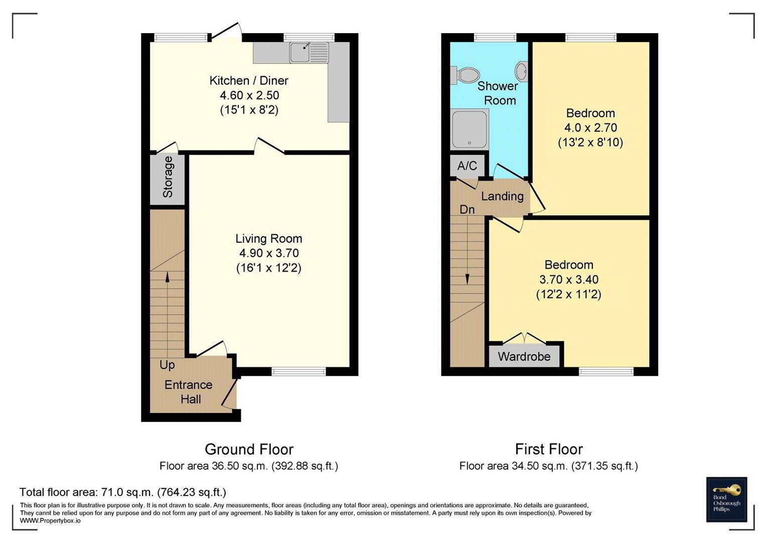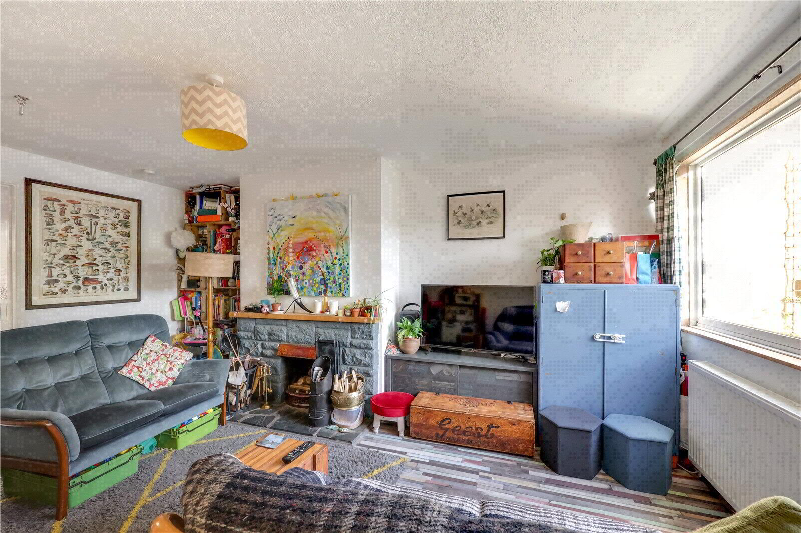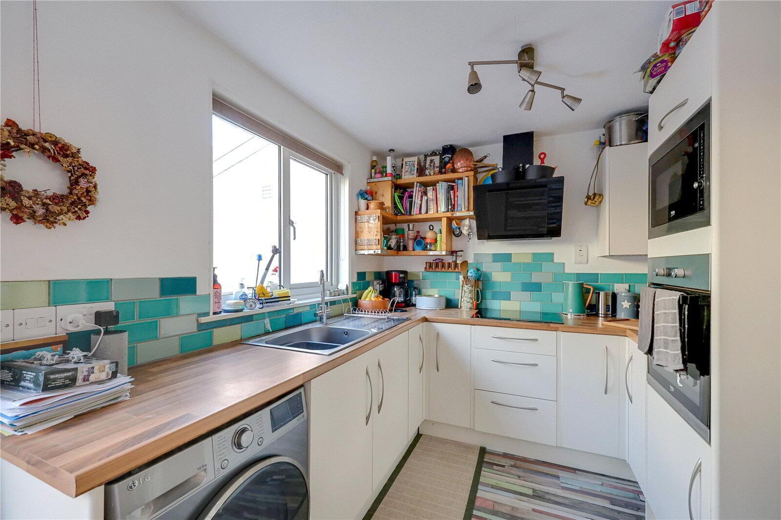 A welcoming Entrance Porch provides the perfect space for coats and shoes, with stairs rising to the first floor. The cosy Living Room enjoys attractive countryside views and features a characterful open fire - an inviting focal point for those winter evenings. To the rear, the well-appointed Kitchen / Diner offers generous storage, including useful understairs space, provisions for a washing machine and direct access to the enclosed, low-maintenance rear garden with a gate leading to the rear lane.
