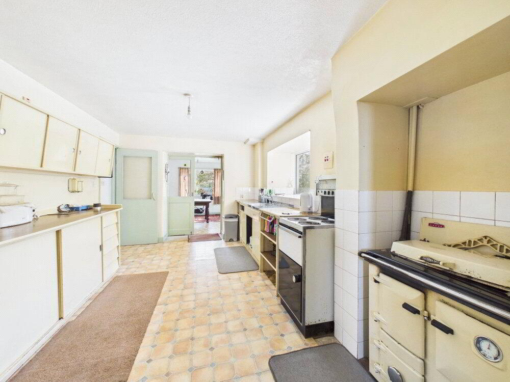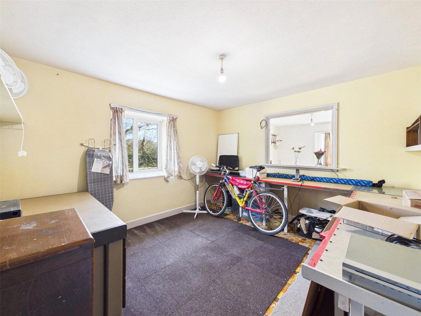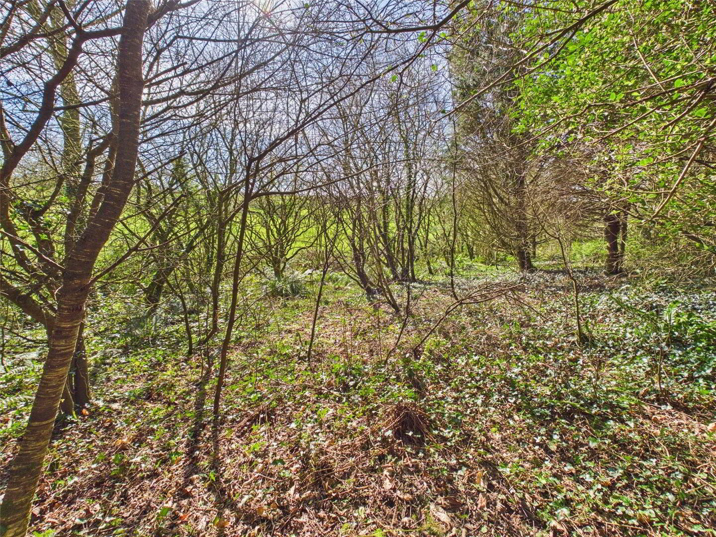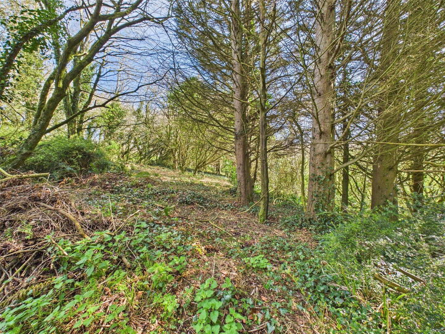 The property is approached via a private driveway providing ample off-road parking and access to a detached double garage with twin up-and-over doors. Set within generous, mature grounds, the gardens offer a high degree of privacy with a mix of lawn, established planting and natural woodland. The plot enjoys a pleasant outlook over surrounding countryside and includes a greenhouse along with various areas ideal for gardening or further landscaping. A paved patio adjoins the property, providing an ideal space for outdoor dining.