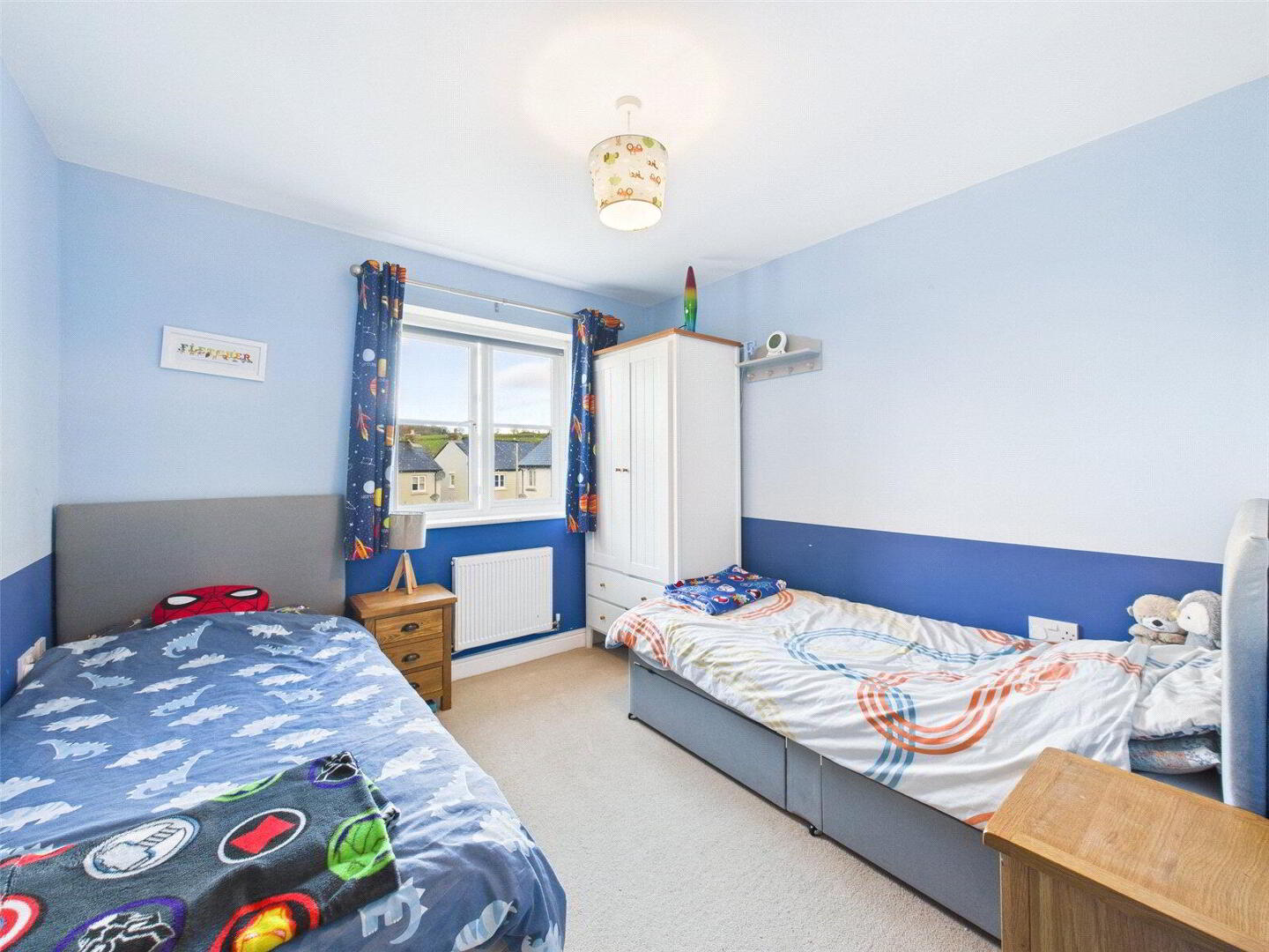 At the heart of the home is a contemporary kitchen/dining room, thoughtfully arranged to provide an inviting space for meal preparation, relaxed dining, and everyday gathering. Stylish units and ample work surfaces give the kitchen a modern yet functional feel, while the dining area offers plenty of room for family meals or entertaining guests. Complementing this is a spacious living room, filled with natural light and offering a comfortable setting for quiet evenings, social occasions, or children’s play.