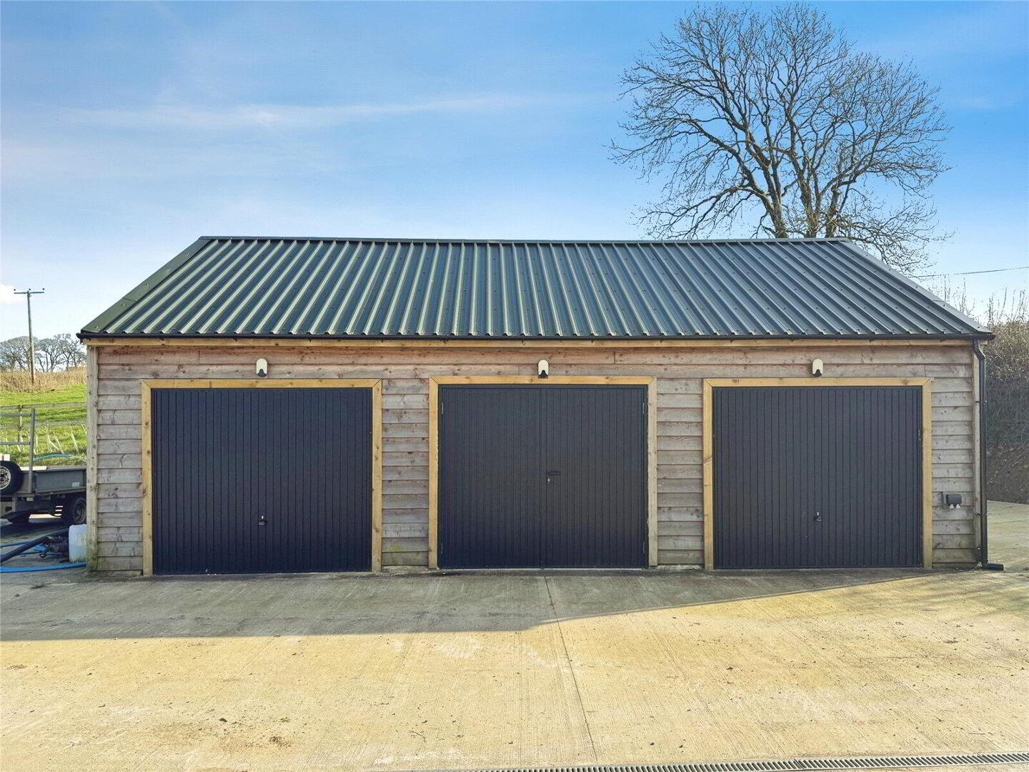 The stable yard enjoys its own private access, allowing excellent access for lorries and horseboxes. To the rear of the stables is a further turnout area with a woodchip surface, enclosed by post and rail fencing. A range of stables, storage and garages are arranged around a level, concreted yard, comprising: