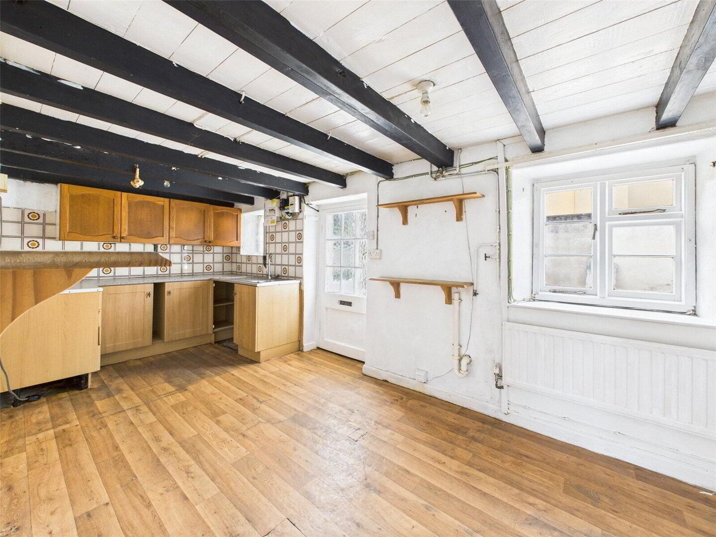 The property would benefit from some modernisation and presents spacious and versatile accommodation, brimming with character features throughout. An entrance porch leads into a generous living room, filled with natural light from twin front-facing windows, and centred around a feature fireplace with a wood-burning stove. To the rear, the fitted kitchen provides space for appliances and enjoys views over the garden, with direct access outside.