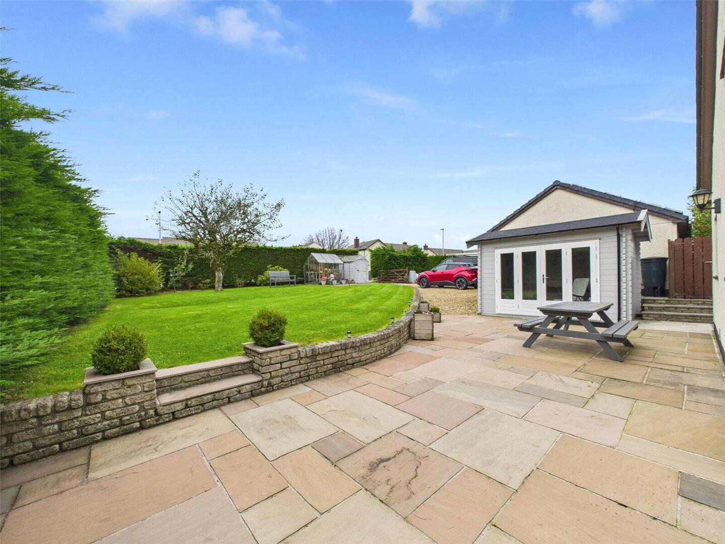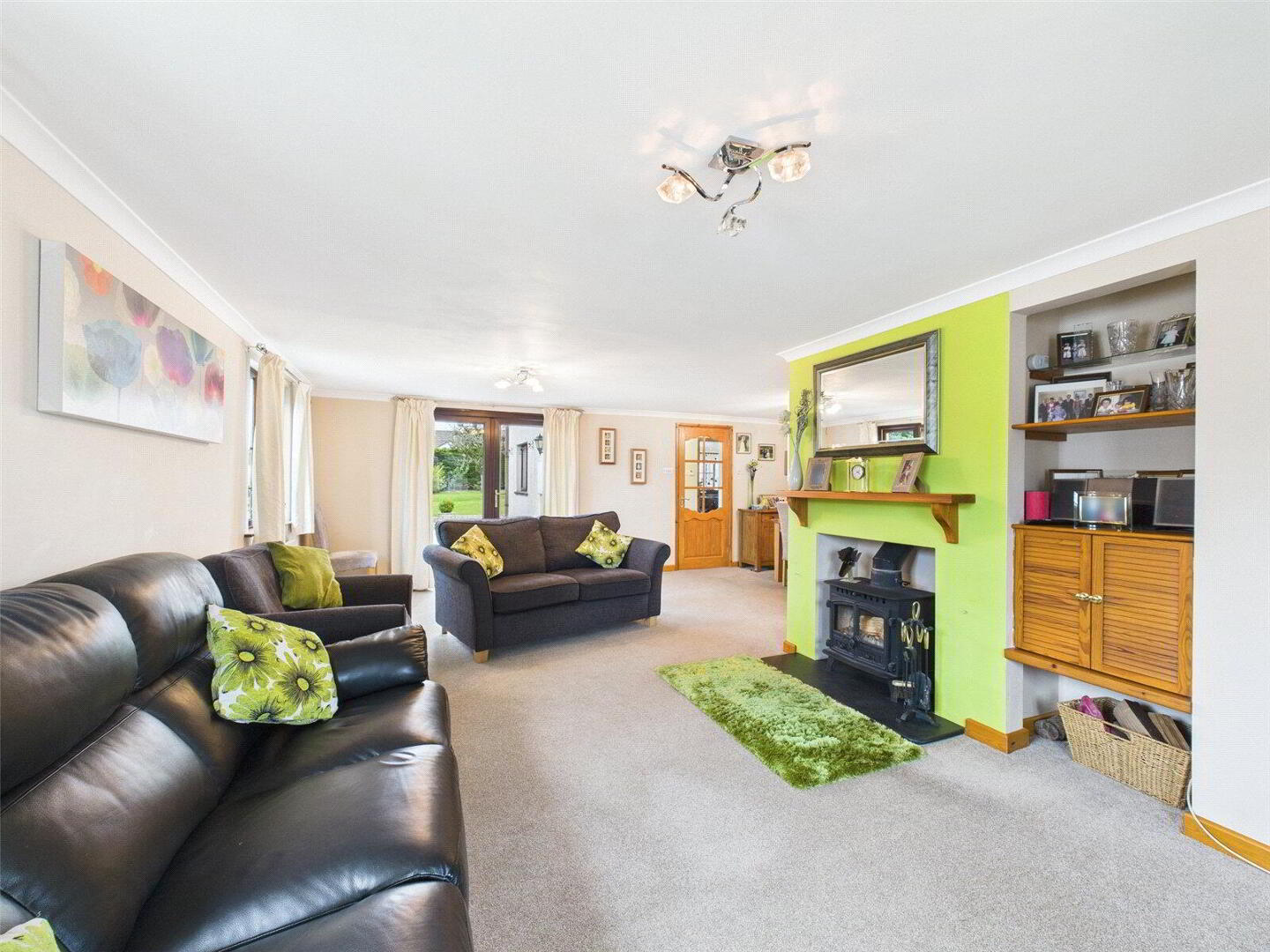 Extended and improved by the current owners, the property now offers spacious, well-presented, and versatile accommodation throughout. Upon entering, you are welcomed by an entrance porch with a cloakroom/WC, opening into a large, triple-aspect ‘L’-shaped living area — a bright and inviting space with a feature fireplace housing a wood-burning stove, and ample room for both living and dining furniture.