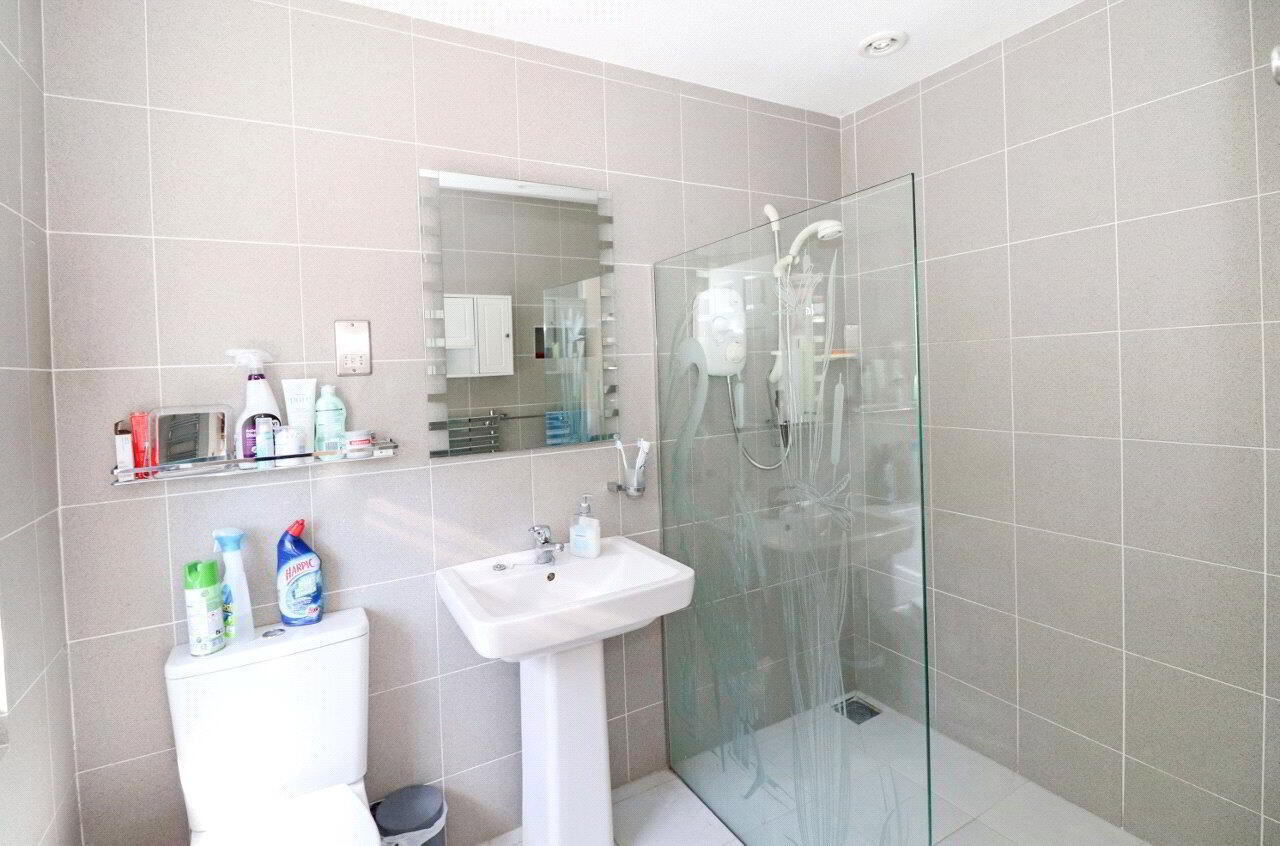 - Recently refitted. Fully tiled. Window to side. 2 piece white suite and a walk-in shower area with an attactive glazed screen and a "Mira Event" shower. Multi-rung radiator/towel rail. Downlighters. Underfloor heating.
