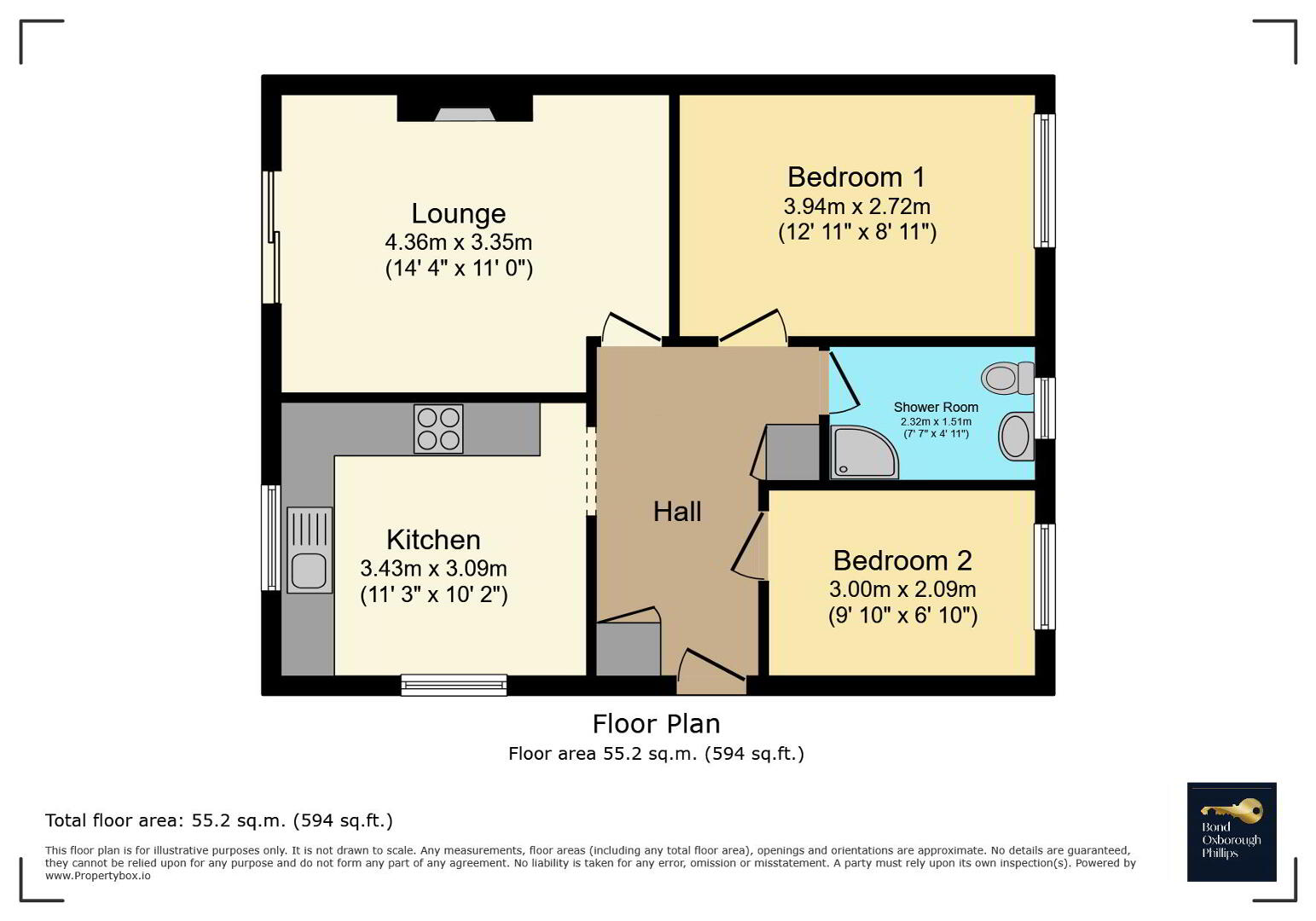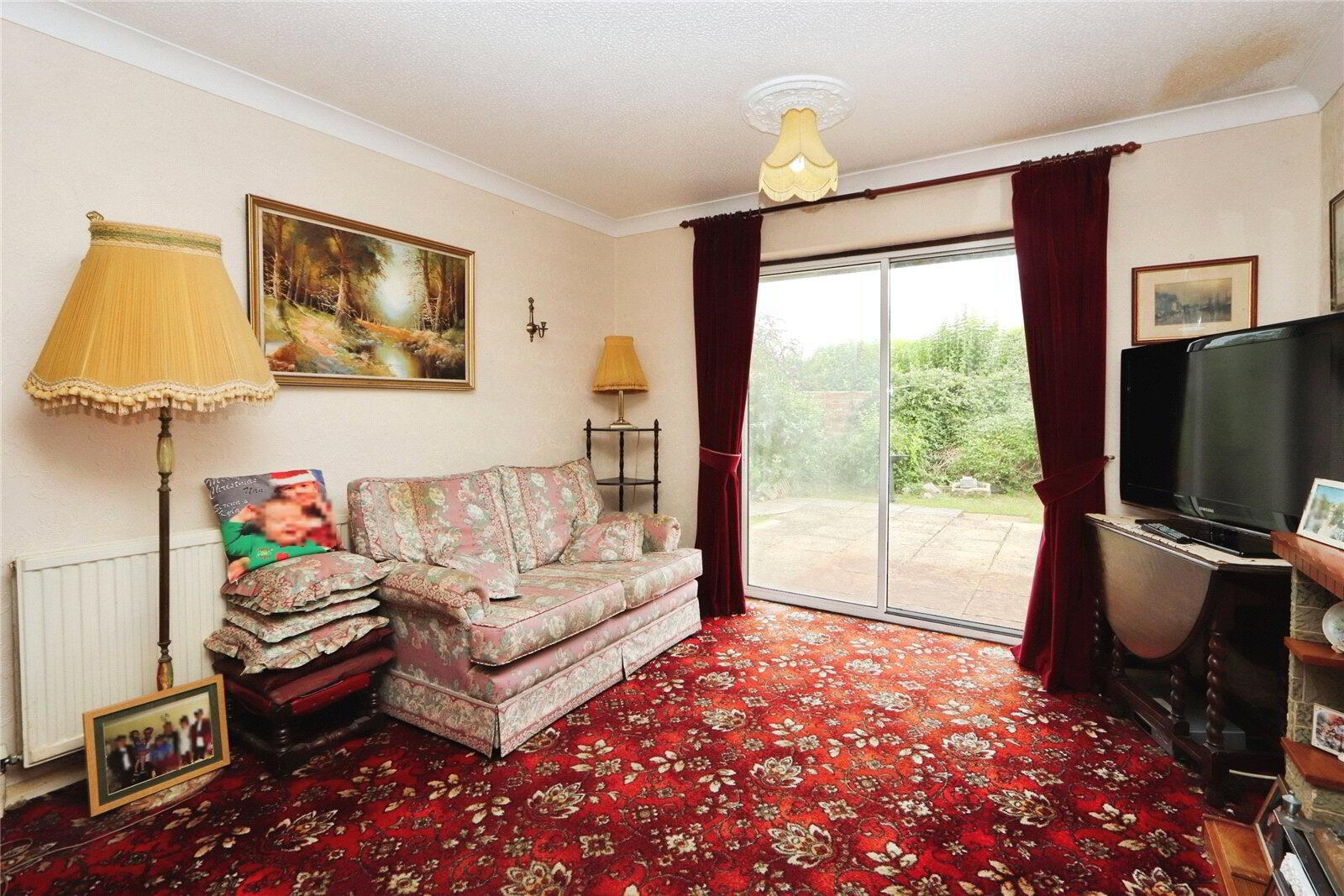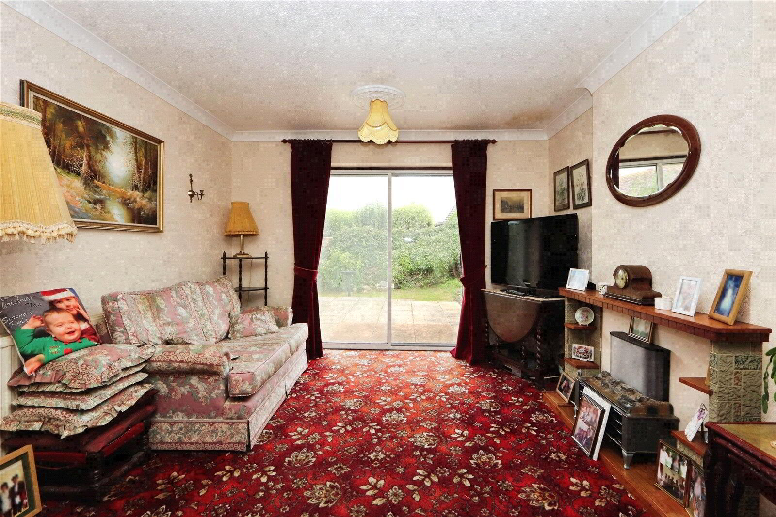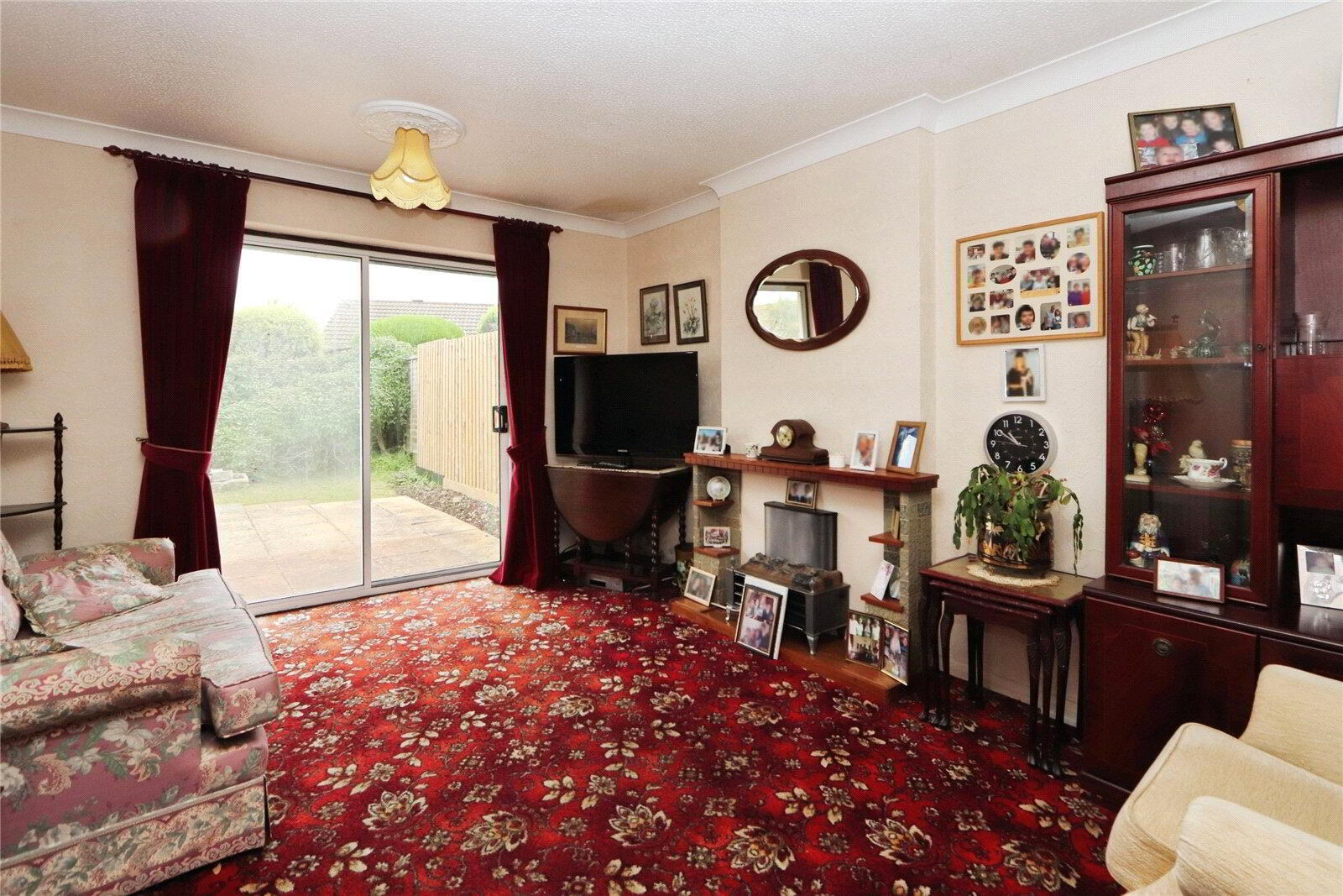 The accommodation is arranged off a central Entrance Hall and includes a spacious Lounge with a large rear garden facing sliding patio door, and a feature fireplace with fitted gas fire, creating a warm and welcoming focal point. The Kitchen is fitted with a range of units and is bathed in natural light from front and side facing windows. There are 2 good sized Bedrooms and a modern white Bathroom suite completes the internal layout.