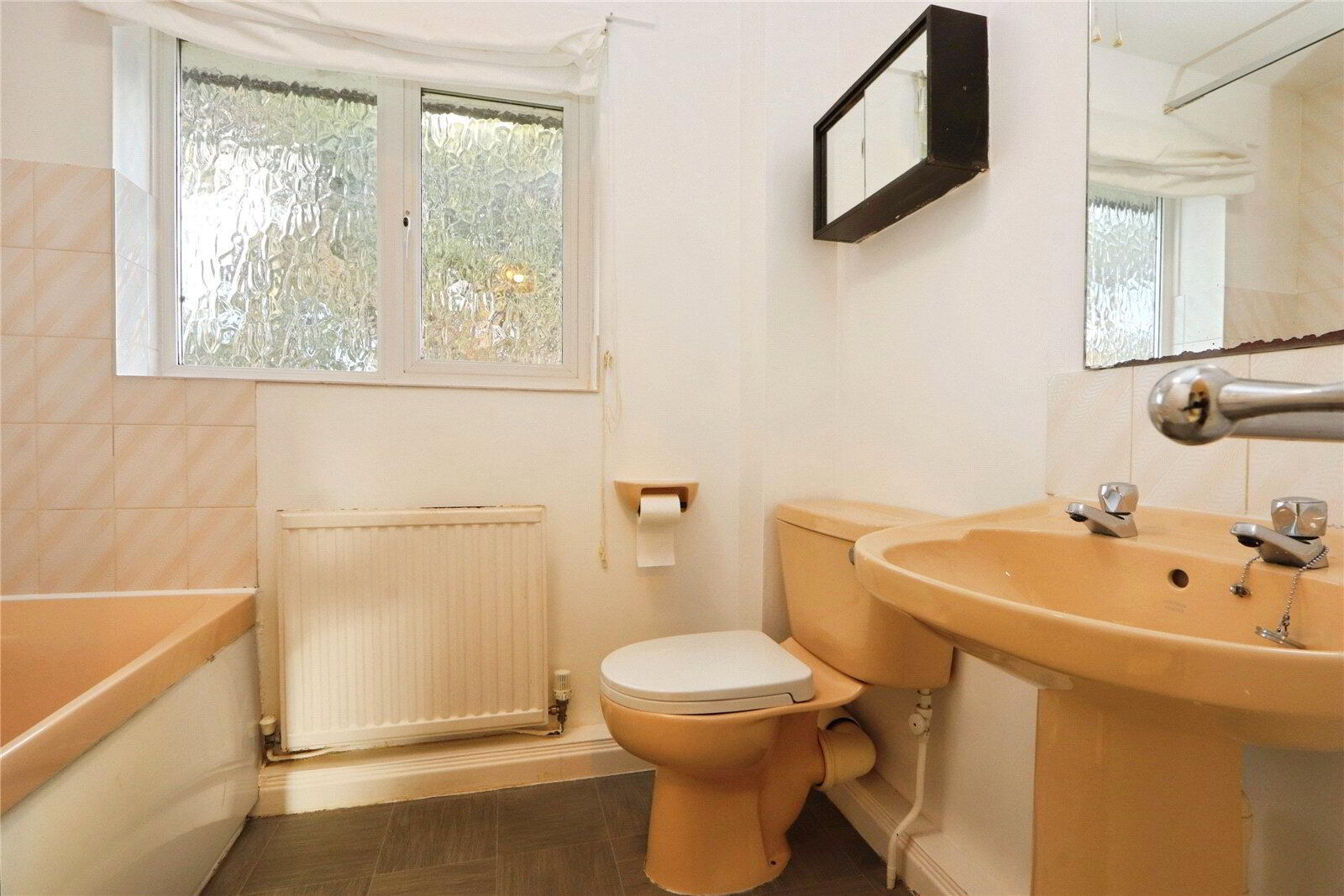 UPVC obscure double glazed window to rear elevation. Suite comprising close couple WC, pedestal wash hand basin with tiled splashbacking and panelled bath with shower over. Tiled splashbacking, radiator, wall mounted electric heater, shaver point,