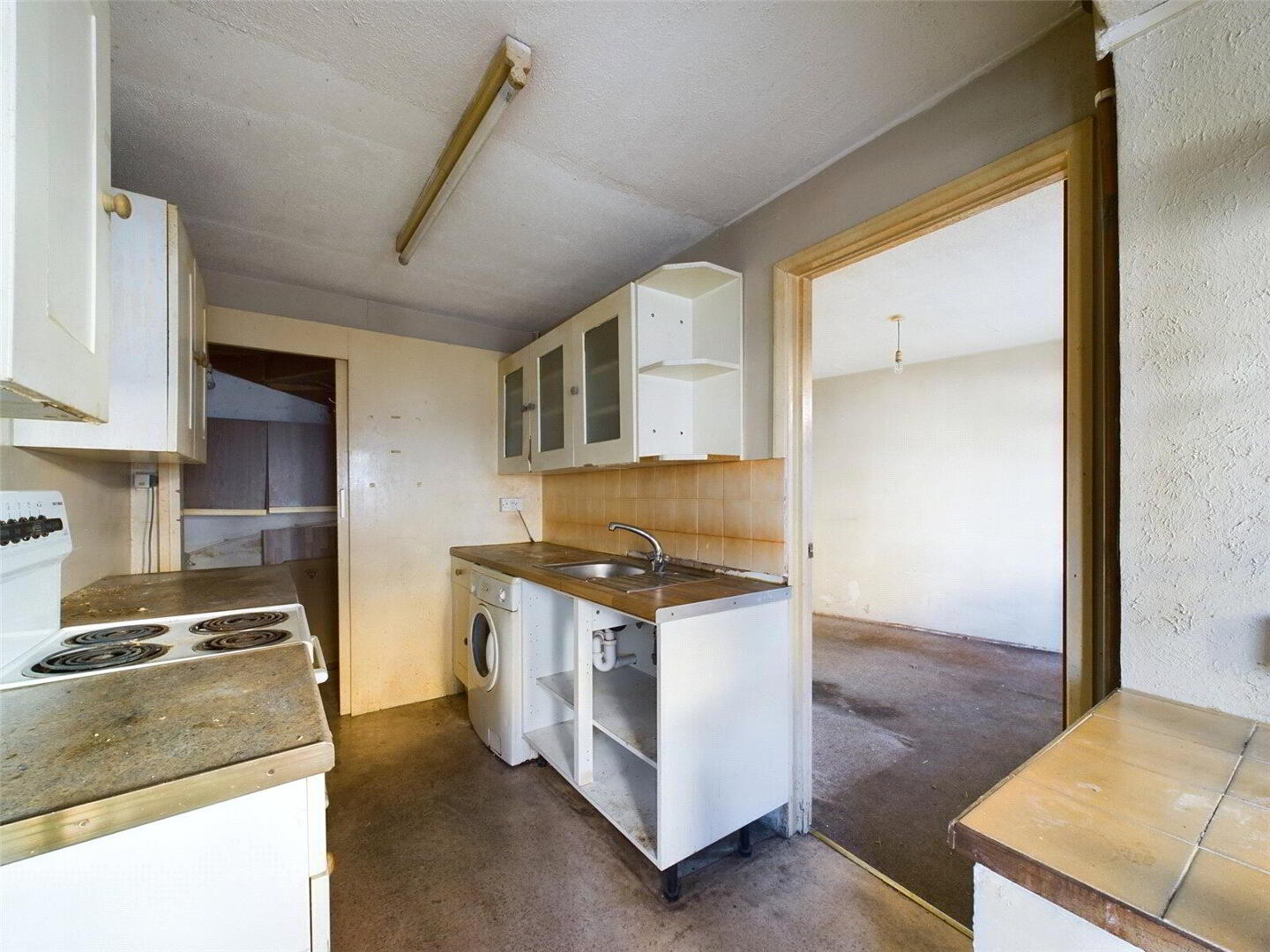 Upon entry, an enclosed porch highlights an updated combi gas boiler, continuing through to the efficiently designed kitchen, with plentiful storage and appliance positioning. A functional front facing living area gives staircase access to the first floor.