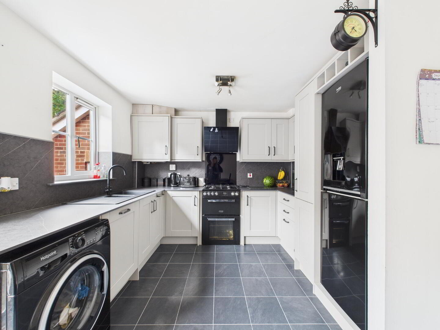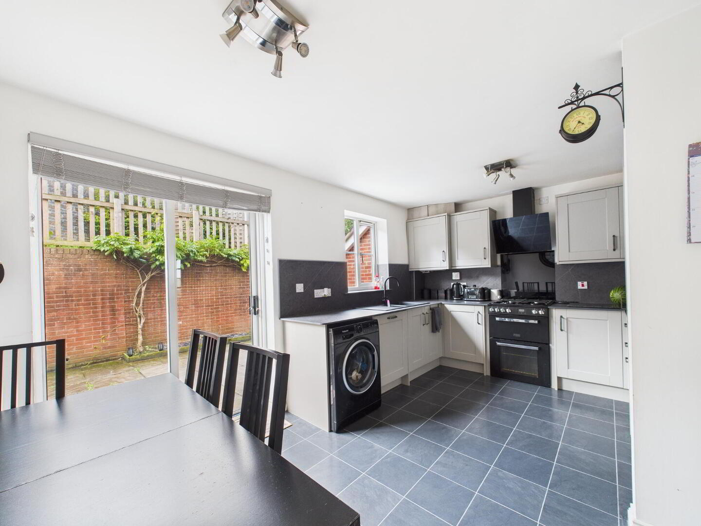 At the heart of the home is a contemporary kitchen/dining room, thoughtfully designed with modern fittings, ample storage, and space for a family dining table – perfect for both everyday living and entertaining guests. The spacious living room to the front of the house provides a bright and relaxing area to unwind, with large windows allowing for plenty of natural light. A downstairs cloakroom adds to the practicality of the layout.