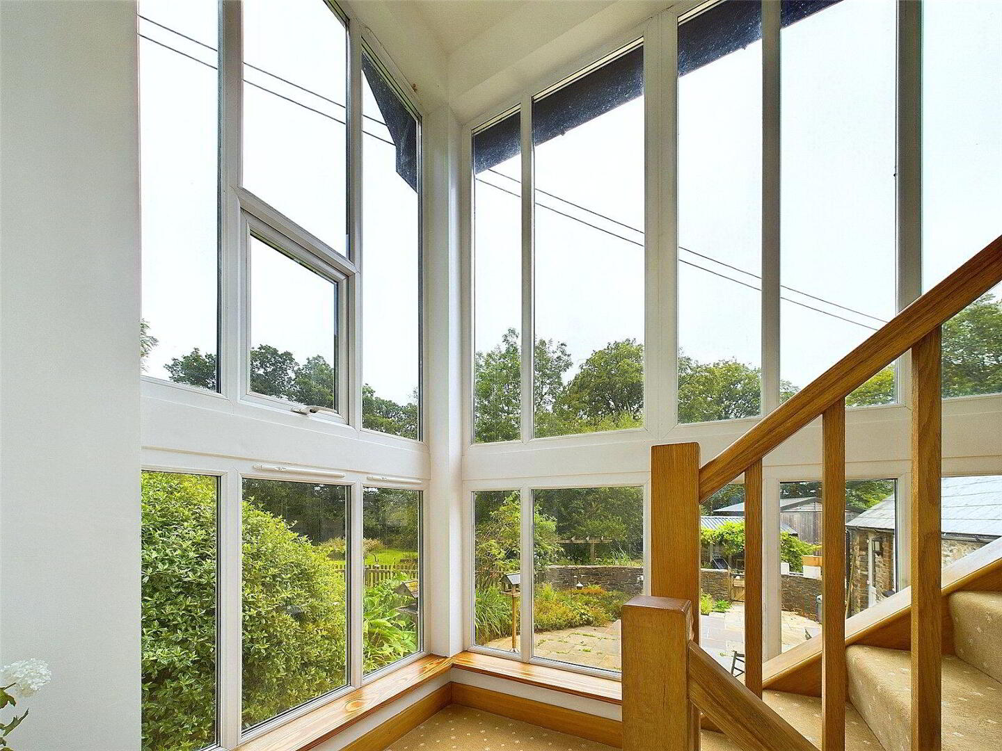 Set within an expansive plot, this property is enveloped by lush, mature woodlands and beautifully landscaped gardens, creating a private haven of peace and tranquillity. The exterior of the home is a harmonious blend of traditional stonework and modern design, seamlessly integrating with its picturesque surroundings. In addition to the stunning main house, the property boasts large outbuildings and a spacious garage, providing ample storage and potential for various uses, whether it be a workshop, studio, or additional living space. A fenced garden area offers a safe and charming space for outdoor activities, while a serene pond adds a touch of natural beauty to the grounds.