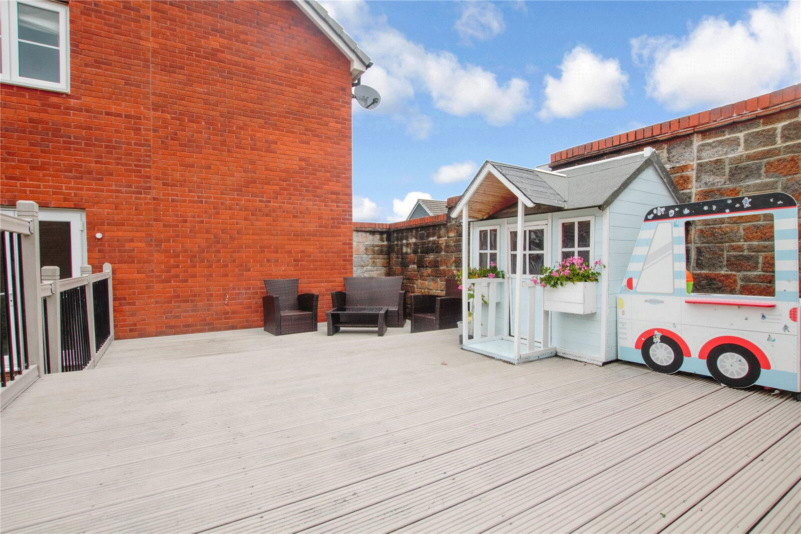 Outside there is a fully enclosed south facing garden. Predominantly laid to lawn for ease of maintenance, there is also a decking area ideal for a table and chairs. From the garden there is a gate to the driveway, providing off road parking and access to the garage.