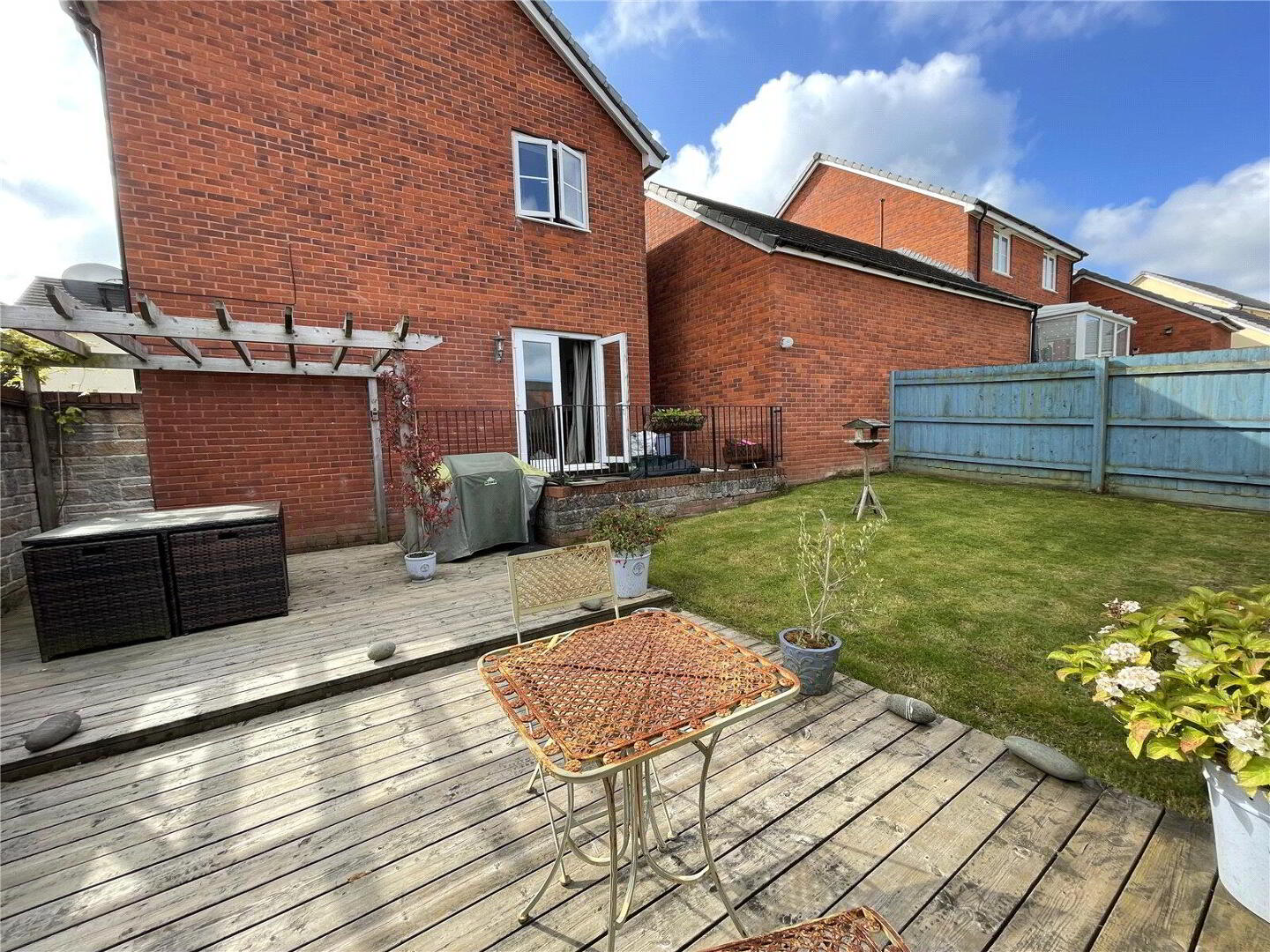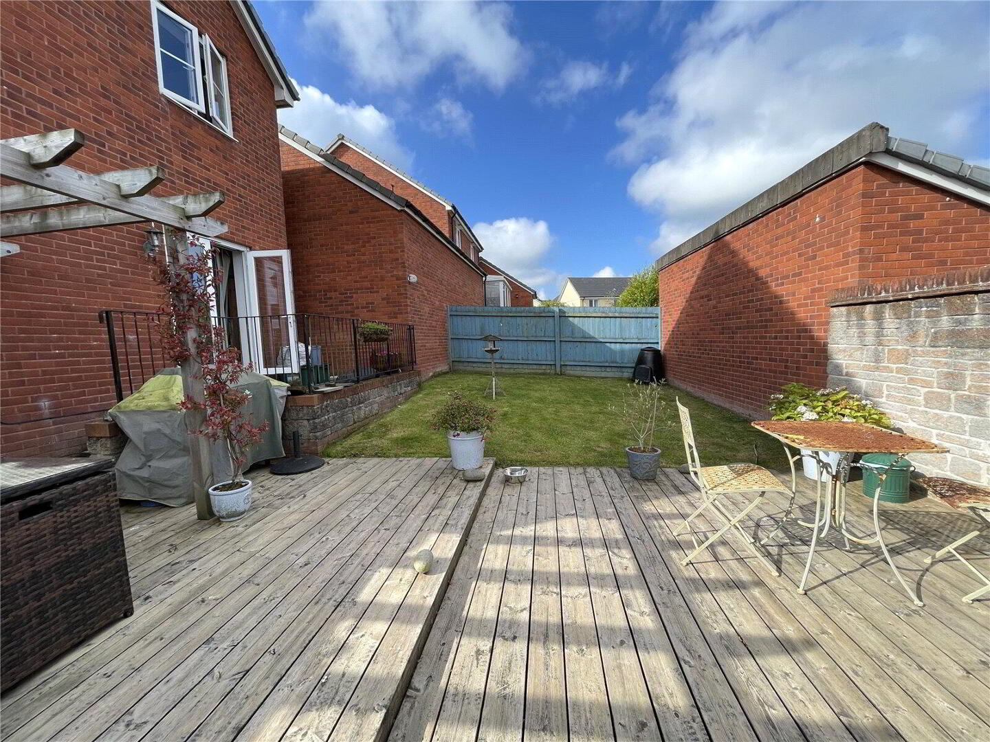 Outside there is a fully enclosed south facing garden. Predominantly laid to lawn for ease of maintenance, there is also a decking area ideal for a table and chairs. From the garden there is a gate to the driveway, providing off road parking and access to the garage.