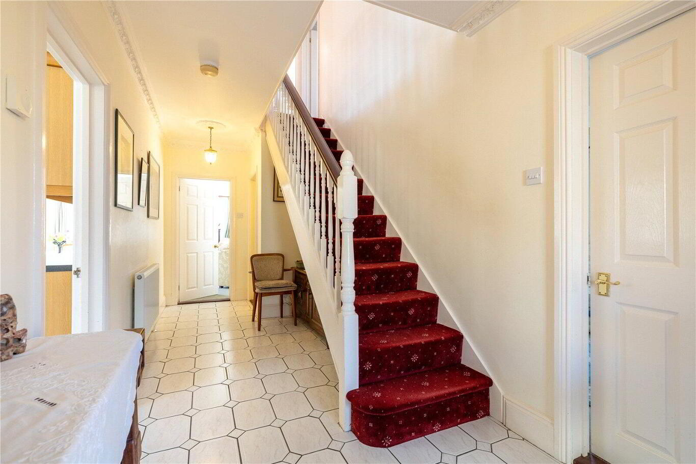 Double glazed composite entrance door and window to property front. Carpeted stairs rising to First Floor. Understairs storage recess. Tiled flooring, radiator.