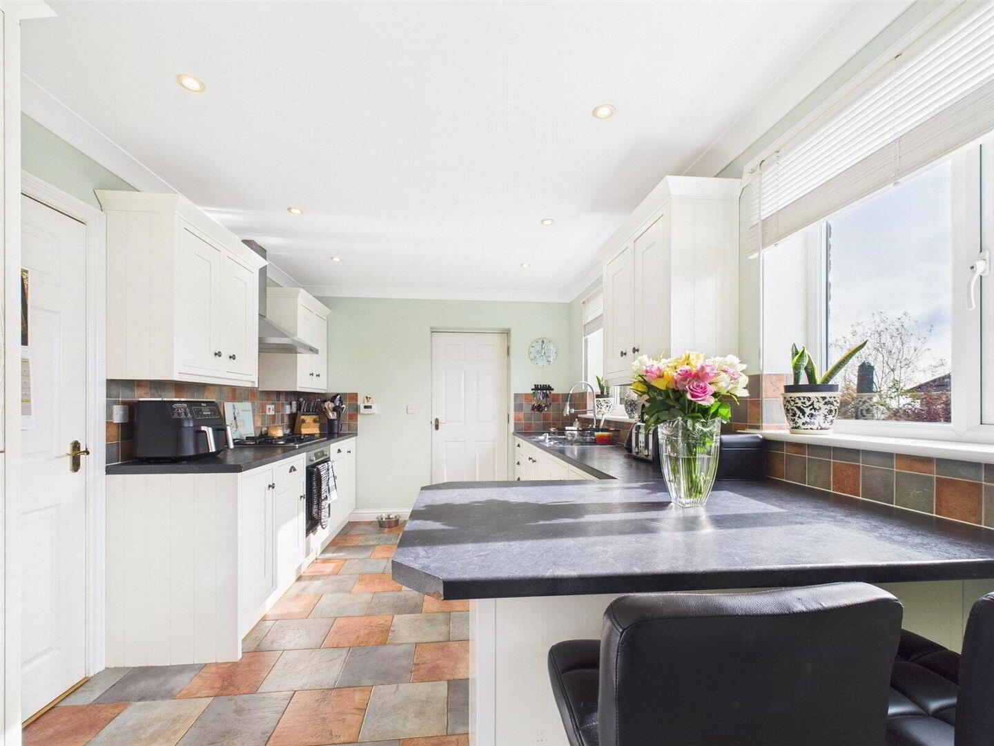 Set on a large corner plot, the property boasts a well-maintained garden, private driveway, and integral garage. The bright interior features a dual-aspect living room with garden access, separate dining room, and a stylish kitchen with breakfast bar. Utility room, downstairs WC, and garage access add convenience.