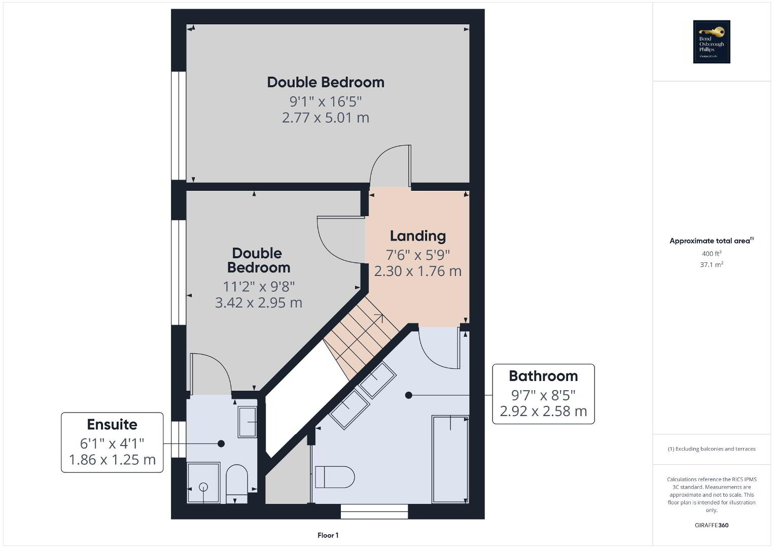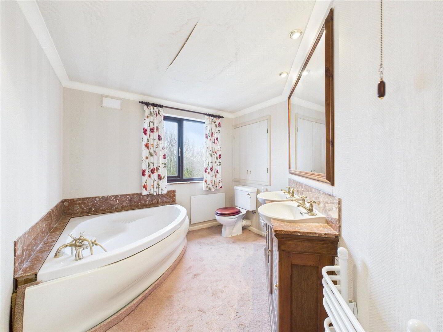 Upstairs, the property features two double bedrooms, both bright and airy with large windows that invite plenty of natural light. The main bedroom enjoys an en-suite bathroom with a walk-in shower, toilet, and basin, while the family bathroom provides a touch of luxury with a large bath and double basins.
