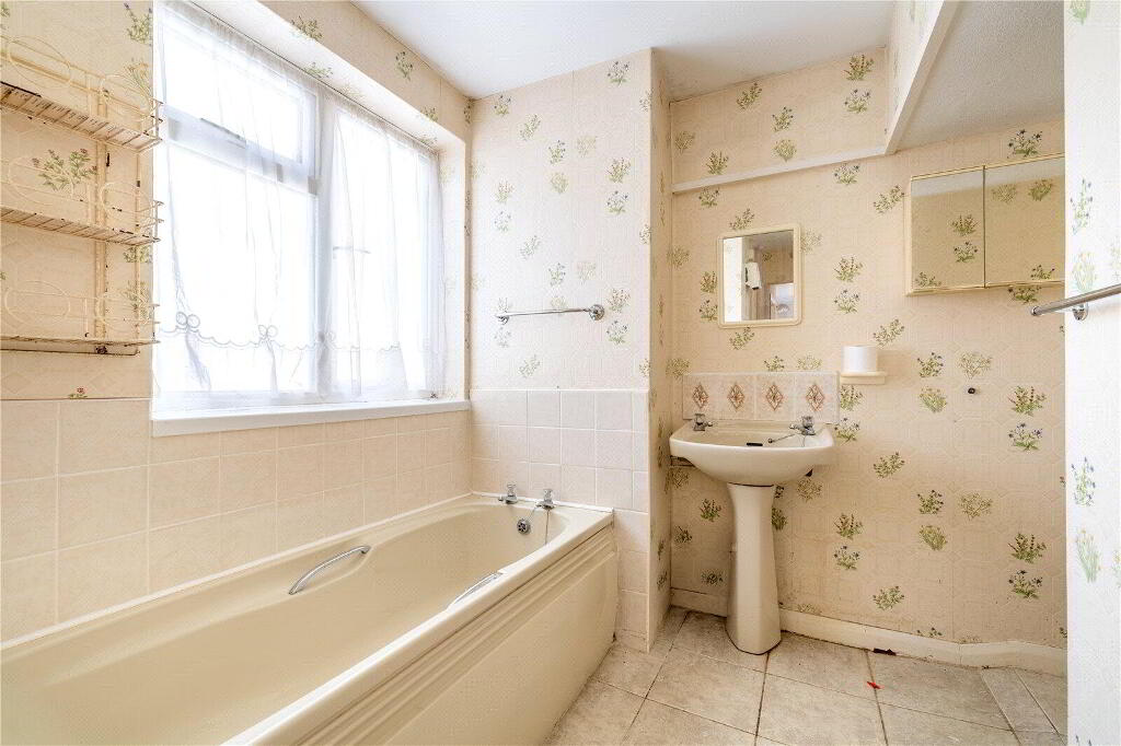 The bungalow offers 3 well-proportioned double Bedrooms. The dual aspect Main Bedroom enjoys an abundance of natural light, while bedrooms 2 and 3 benefit from front facing windows overlooking the south-facing garden. The 4-piece Bathroom is in need of updating but provides ample space for a re-design.