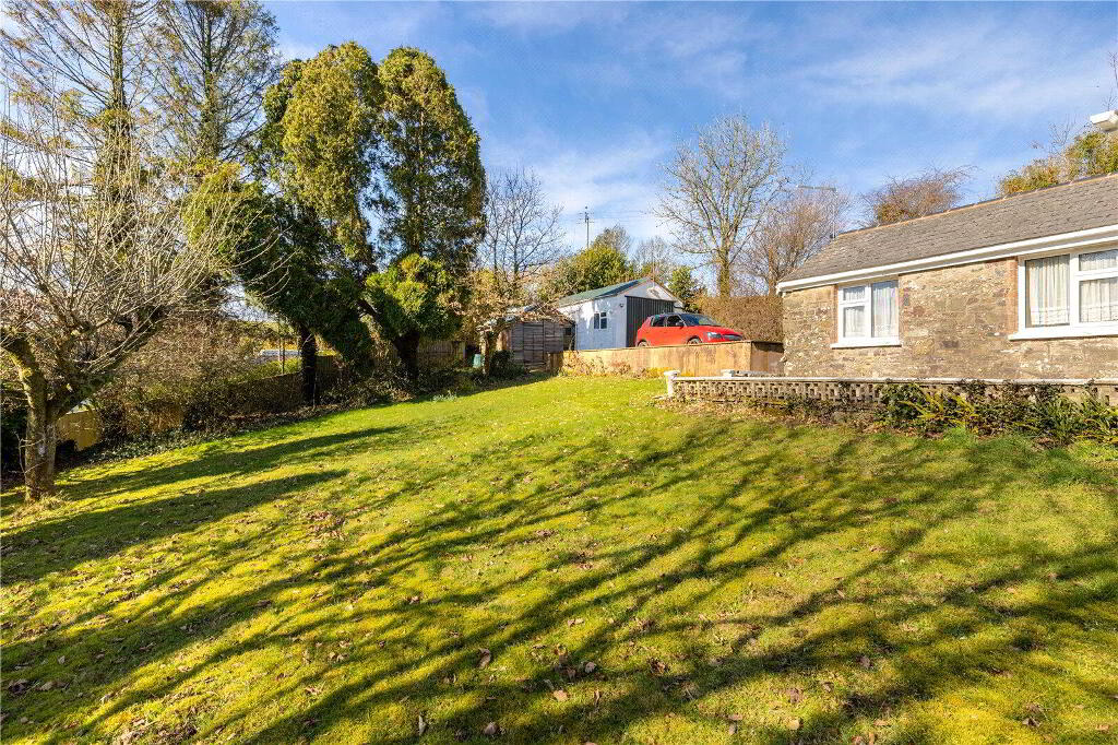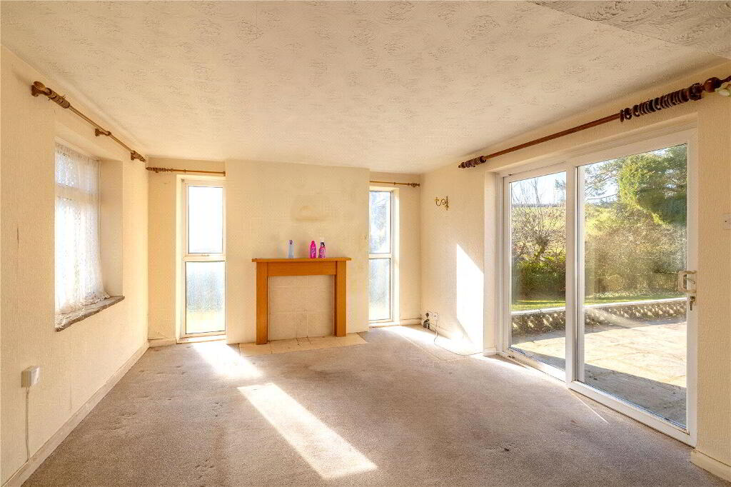 Village location, 3 double bedroom detached bungalow, generous south-facing plot, countryside views, 30ft workshop and garage. In need of modernisation, no onward chain.