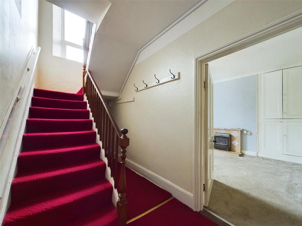 The main entrance of number 34 opens into a welcoming hallway, providing access to the sitting room, featuring a charming tiled fireplace, a separate dining room, and a well-proportioned kitchen with direct access to the rear garden. A fully tiled wet room completes the ground floor.