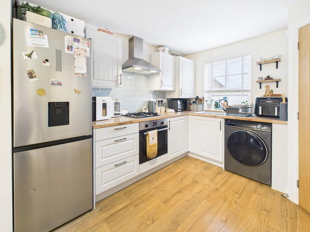 Upon entering, you are welcomed into a bright and airy open-plan living space, designed to maximise light and create a seamless flow between the kitchen, dining, and lounge areas. This versatile space is perfect for modern-day living, whether you're entertaining guests or enjoying a quiet evening at home. The contemporary kitchen is fitted with stylish units, integrated appliances, and ample worktop space, making it both functional and aesthetically pleasing. Large windows and patio doors allow natural light to flood the room, while offering easy access to the rear garden.