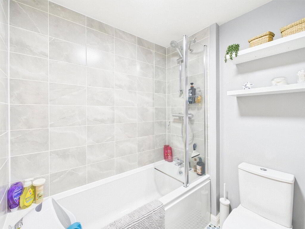 Upstairs, the property boasts two well-proportioned double bedrooms, both offering a relaxing retreat at the end of the day. The principal bedroom provides ample space for wardrobes and additional furniture, while the second bedroom is equally spacious, making it ideal for guests, children, or a home office. The modern family bathroom serves both bedrooms and is fitted with a sleek white suite, including a bath with shower over, washbasin, and WC.