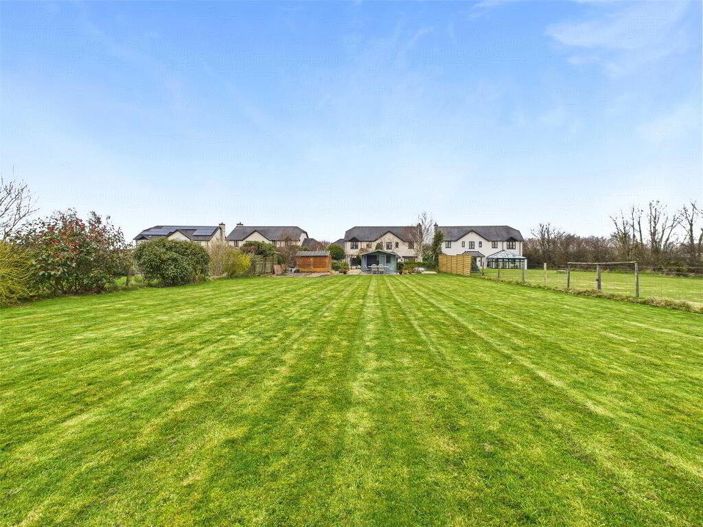 The property is approached via its own tarmac drive, providing off road parking for 2 vehicles and gives access to the double garage and front entrance door. The front garden is principally laid to lawn and decorated with a variety of mature shrubs. The rear garden is separated into 2 sections, the first section adjoining the property has a paved patio area providing the ideal spot for alfresco dining and entertaining. Steps lead to an area laid to lawn which has been planted with a range of flower, shrubs and mature trees and decorated with a water feature. The second part of the garden leads to a large area laid to lawn that is bordered by a mixture of wooden fencing and stock proof fencing. Within the garden there is a vegetable plot, summer house and small productive orchard.