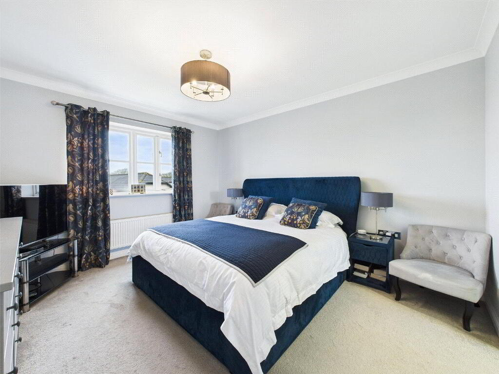 Large double bedroom with fitted wardrobes. Window to rear elevation, enjoying views of the garden and countryside beyond.